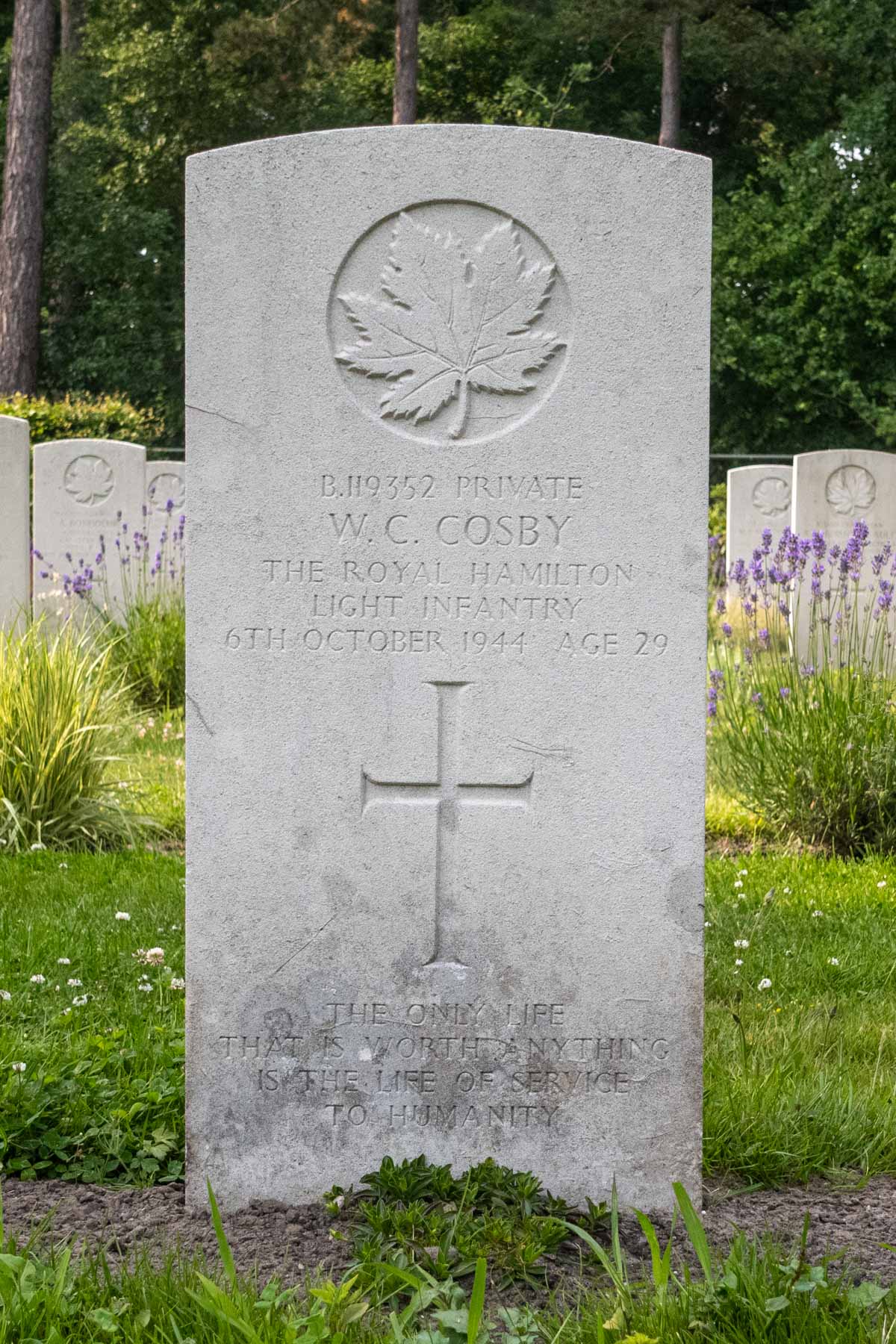Overlijdensdatum (dd-mm-jjjj): 06-10-1944Leeftijd bij overlijden: 29 jaarDefinitieve begraafplaats: Canadian War CemeteryGrafnummer (plot, rij, graf): 10 C 03Rang: PrivateServicenummer: B/119352