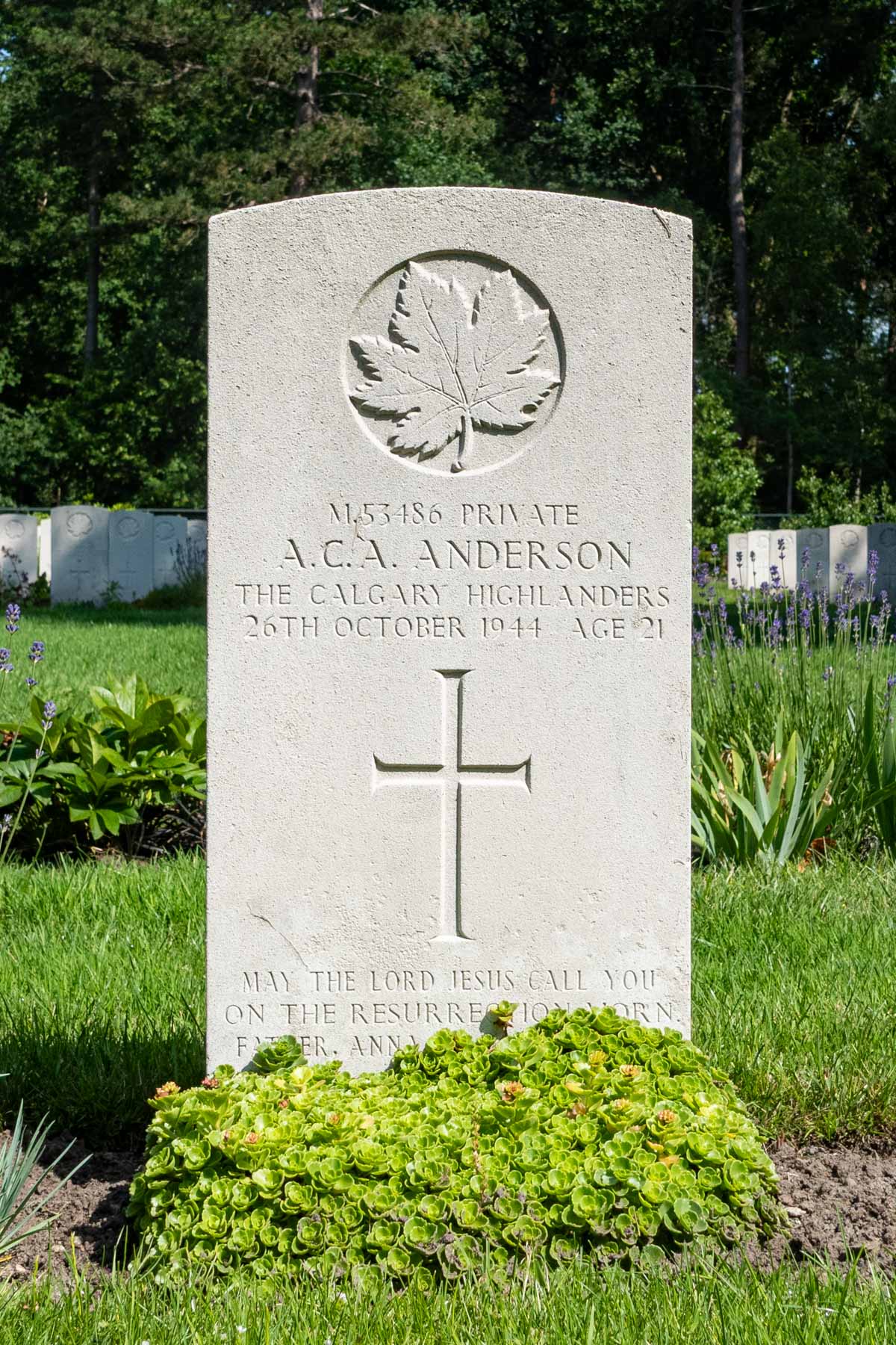 Date of death (dd-mm-yyyy): 26-10-1944Age at death: 21 yearFinal cemetery: Canadian War CemeteryGrave number (plot, row, grave): 04 F 11Rank: PrivateService number: M/53486