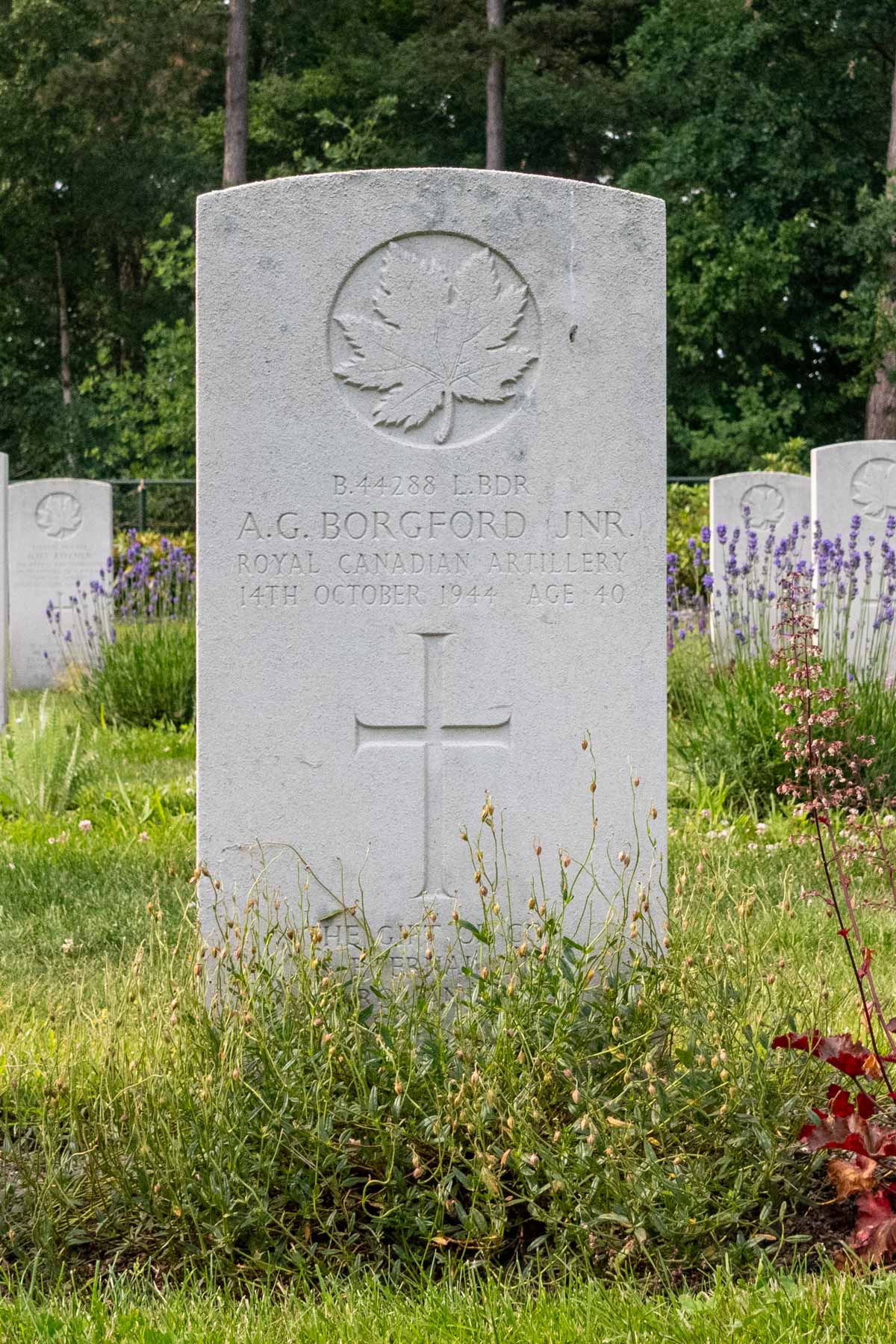 Date of death (dd-mm-yyyy): 14-10-1944Age at death: 40 yearFinal cemetery: Canadian War CemeteryGrave number (plot, row, grave): 10 D 04Rank: Lance BombardierService number: B/44288