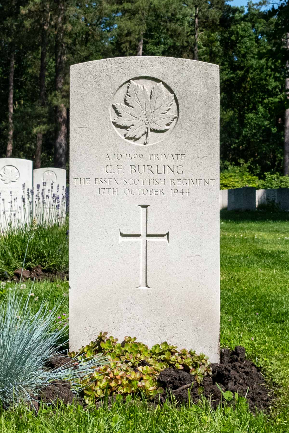 Date of death (dd-mm-yyyy): 24-10-1944Final cemetery: Canadian War CemeteryGrave number (plot, row, grave): 01 E 12Rank: PrivateService number: A/107599