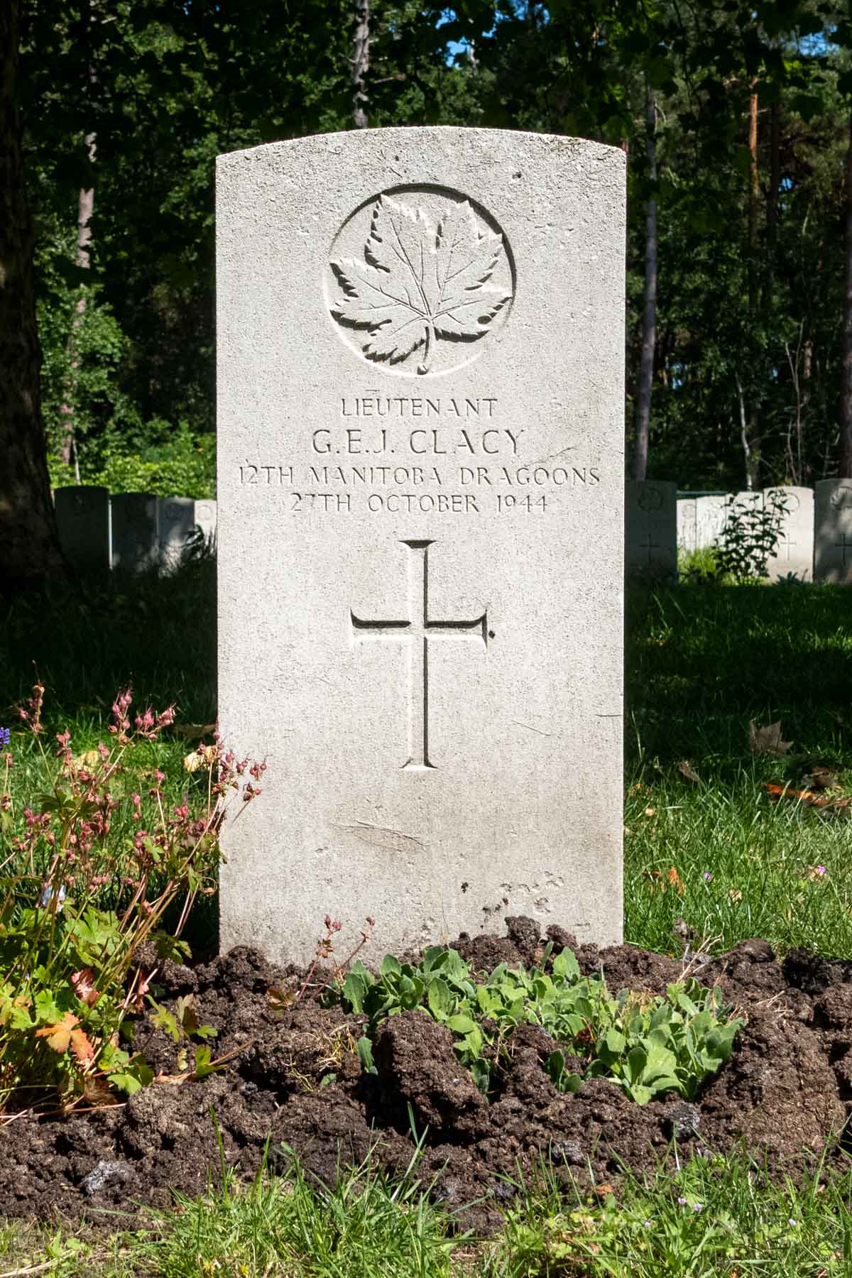 Spouse: Margaret Loretta St. AmandParents: Mr. and Mrs. George E. Clacy of St. LaurentDate of death (dd-mm-yyyy): 27-10-1944Final cemetery: Canadian War CemeteryGrave number (plot, row, grave): 02 H 08Rank: Lieutenant
