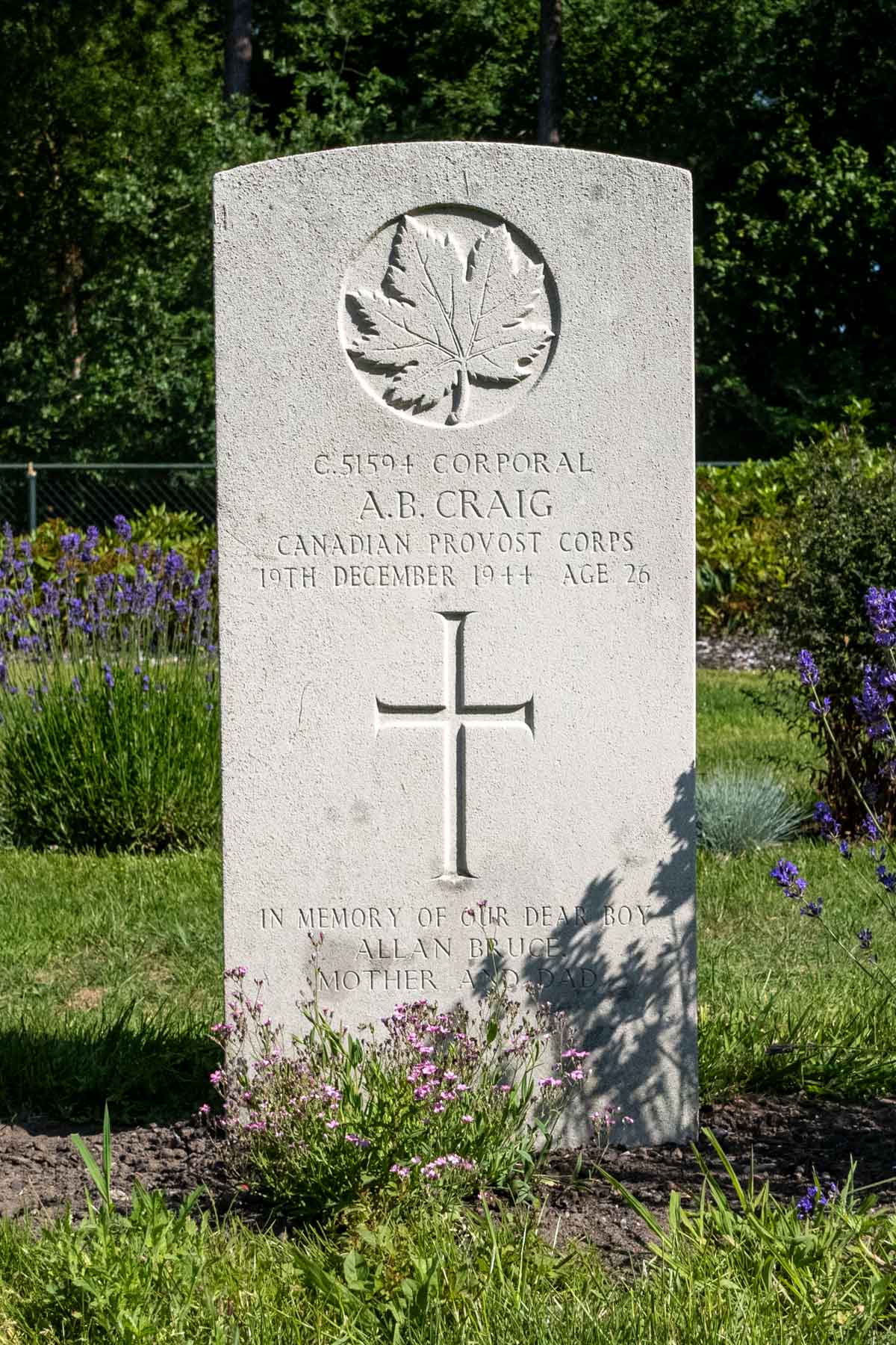 Date of death (dd-mm-yyyy): 19-12-1944Age at death: 26 yearFinal cemetery: Canadian War CemeteryGrave number (plot, row, grave): 10 F 05Rank: CorporalService number: C/51594