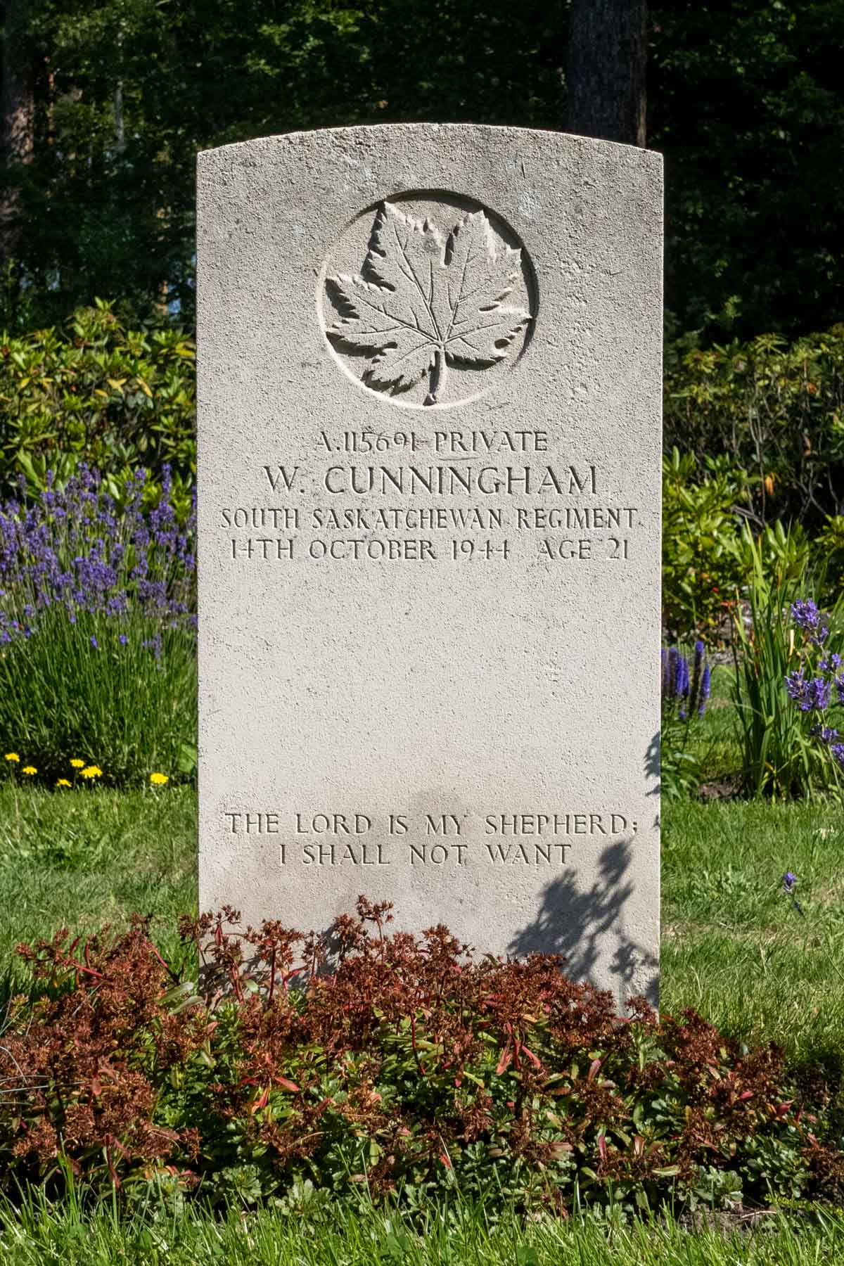 Date of birth (dd-mm-yyyy): 09-11-1922Parents: Wilfred and Nellie CunninghamDate of death (dd-mm-yyyy): 14-10-1944Age at death: 21 yearFinal cemetery: Canadian War CemeteryGrave number (plot, row, grave): 11 G 06Rank: PrivateService number: A/115691