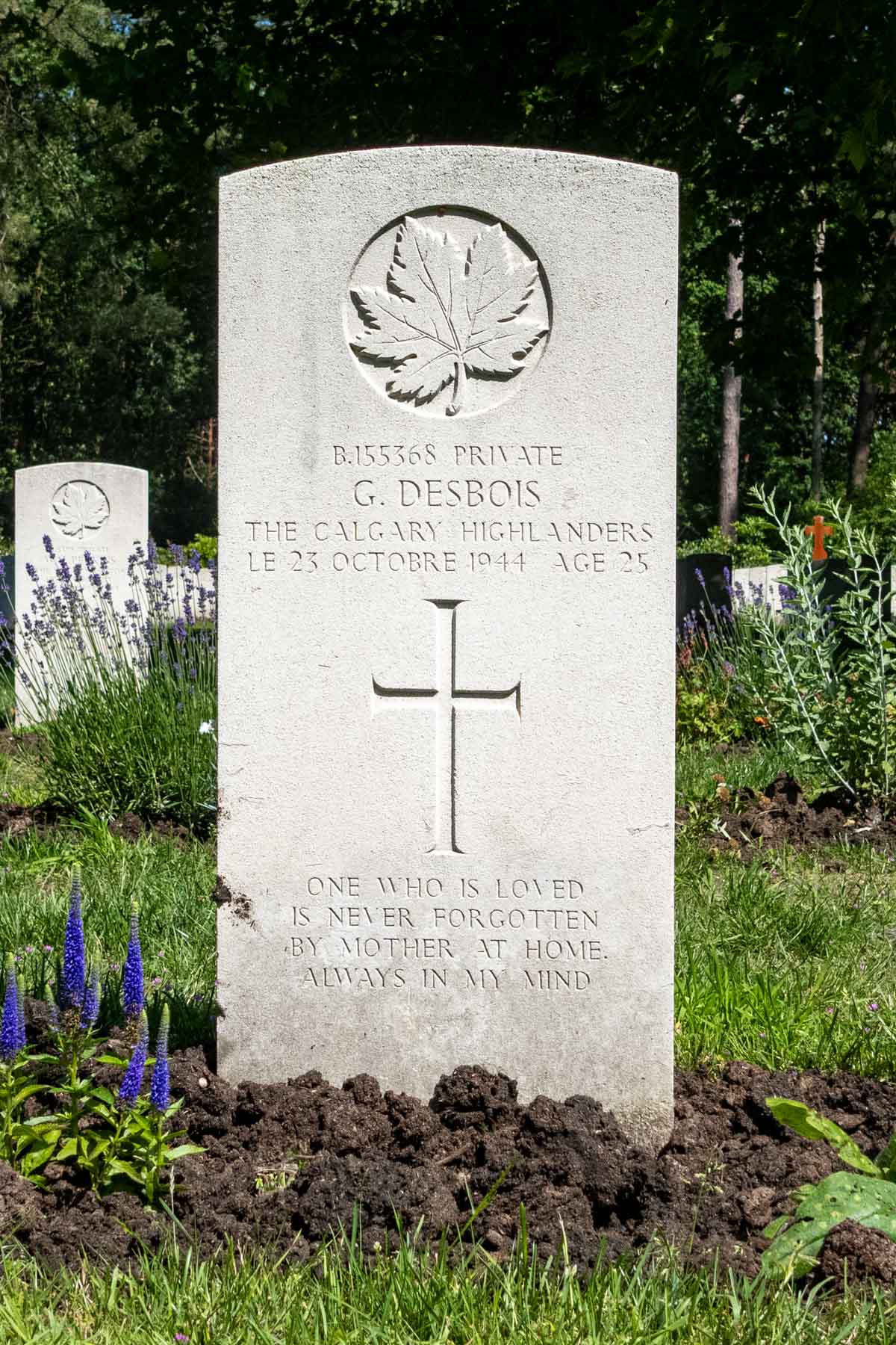 Date of death (dd-mm-yyyy): 23-10-1944Age at death: 25 yearFinal cemetery: Canadian War CemeteryGrave number (plot, row, grave): 02 F 03Rank: PrivateService number: B/155368
