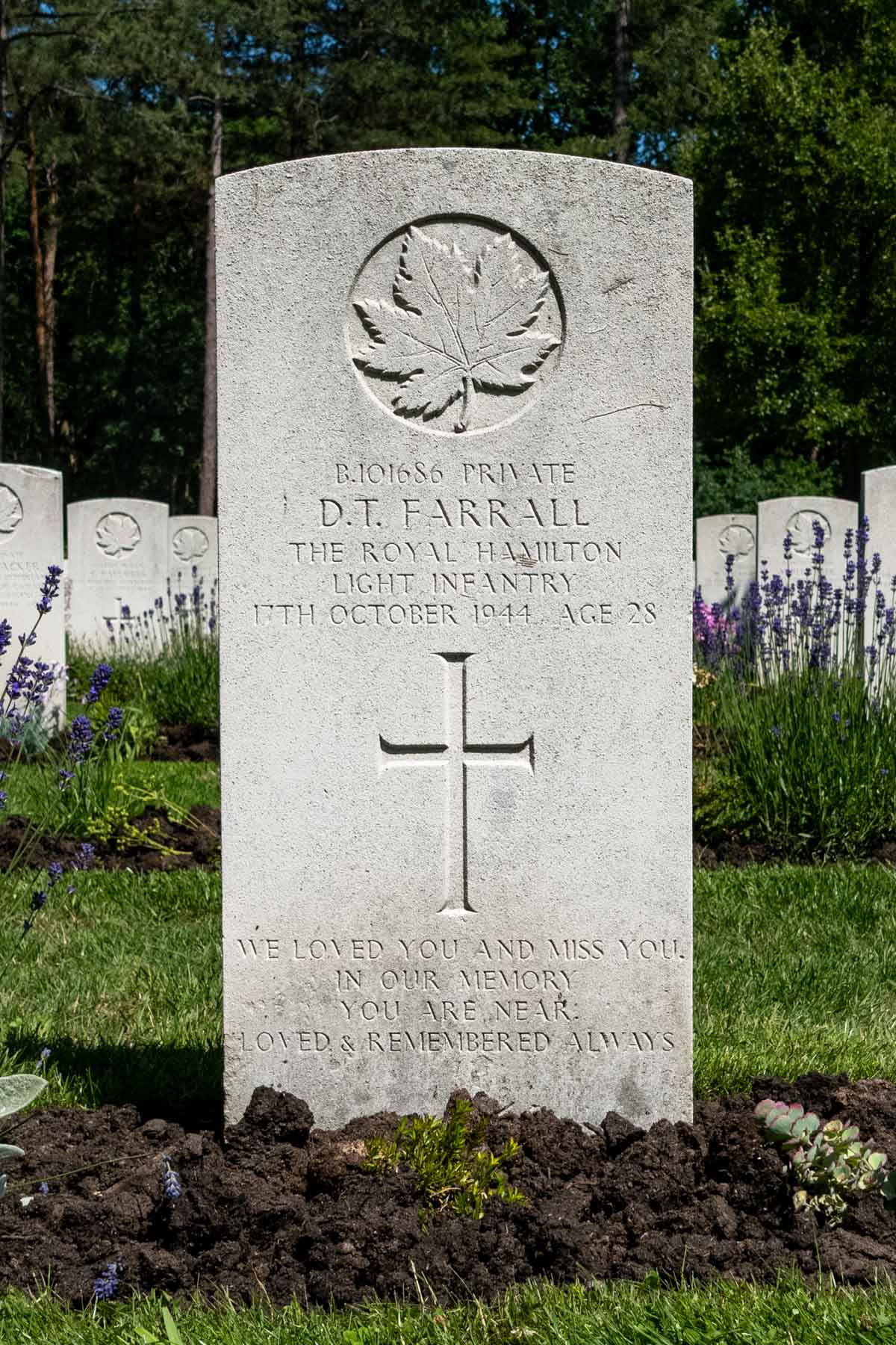 Date of death (dd-mm-yyyy): 17-10-1944Age at death: 28 yearFinal cemetery: Canadian War CemeteryGrave number (plot, row, grave): 03 C 10Rank: PrivateService number: B/101686