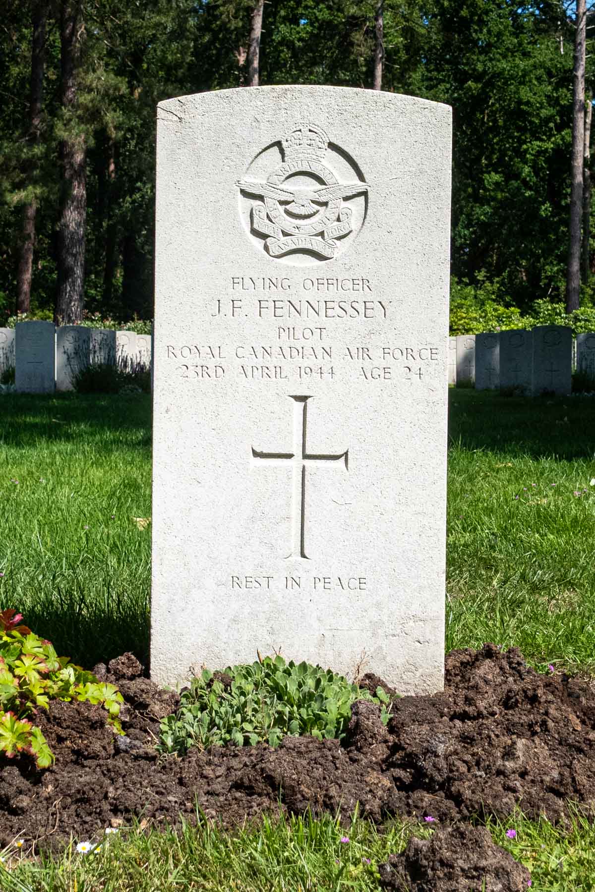 Date of death (dd-mm-yyyy): 23-04-1944Age at death: 24 yearFinal cemetery: Canadian War CemeteryGrave number (plot, row, grave): 01 H 12Rank: Flying OfficerService number: J/25009