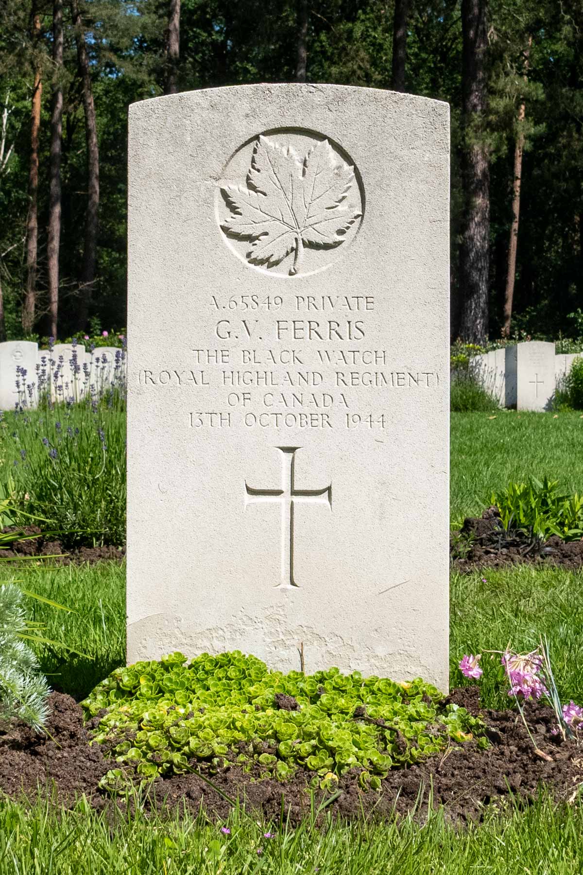 Date of death (dd-mm-yyyy): 13-10-1944Final cemetery: Canadian War CemeteryGrave number (plot, row, grave): 01 G 06Rank: PrivateService number: A/65849