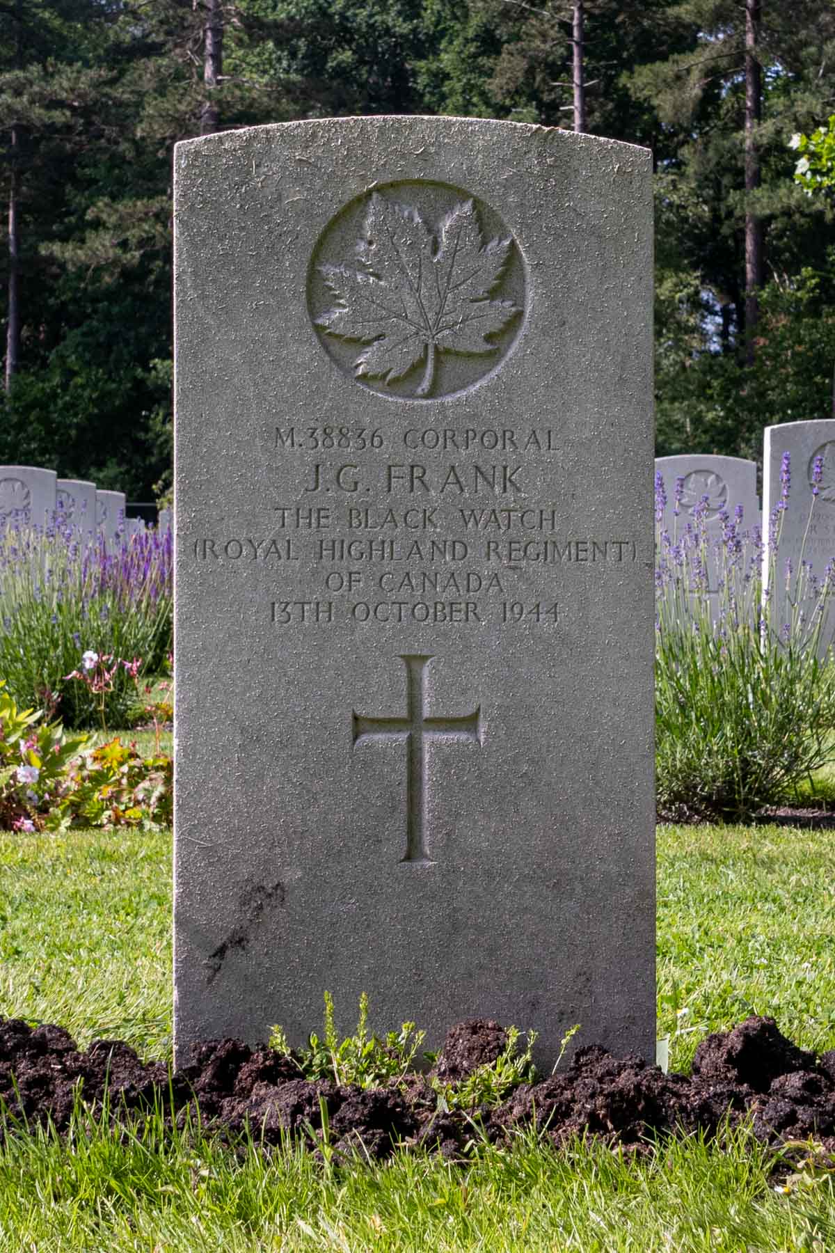 Parents: Jacob Frank and Anna Frank-HausherrDate of death (dd-mm-yyyy): 13-10-1944Age at death: 29 yearReason of death: Killed in actionPresumed place of death: WoensdrechtTemporary cemetery: OssendrechtFinal cemetery: Canadian War CemeteryGrave number (plot, row, grave): 04 A 10Rank: CorporalService number: M/38836