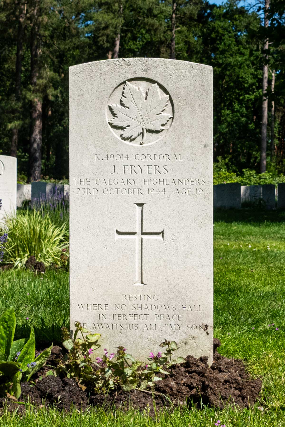 Date of death (dd-mm-yyyy): 23-10-1944Age at death: 19 yearFinal cemetery: Canadian War CemeteryGrave number (plot, row, grave): 01 F 12Rank: CorporalService number: K/49014