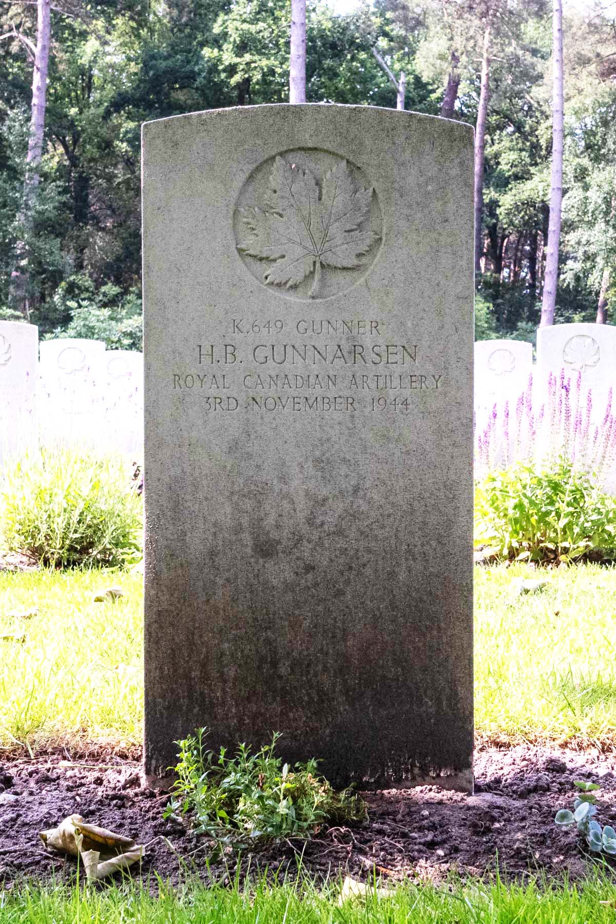 Date of death (dd-mm-yyyy): 03-11-1944Final cemetery: Canadian War CemeteryGrave number (plot, row, grave): 08 A 06Rank: GunnerService number: K/649