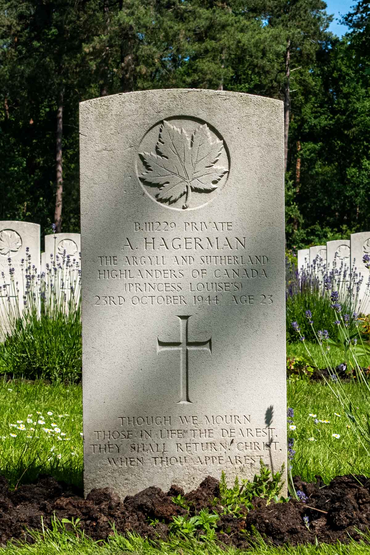 Date of birth (dd-mm-yyyy): 03-11-1921Date of death (dd-mm-yyyy): 23-10-1944Age at death: 23 yearFinal cemetery: Canadian War CemeteryGrave number (plot, row, grave): 01 B 11Rank: PrivateService number: B/111229