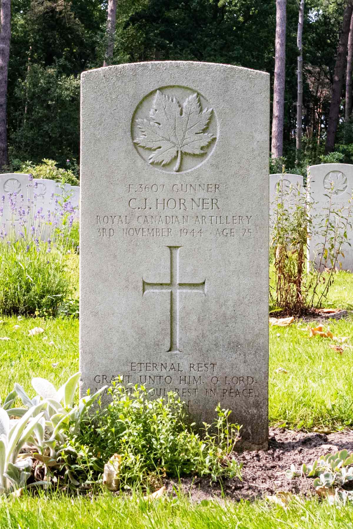 Date of death (dd-mm-yyyy): 03-11-1944Age at death: 25 yearFinal cemetery: Canadian War CemeteryGrave number (plot, row, grave): 08 A 02Rank: GunnerService number: F/3607