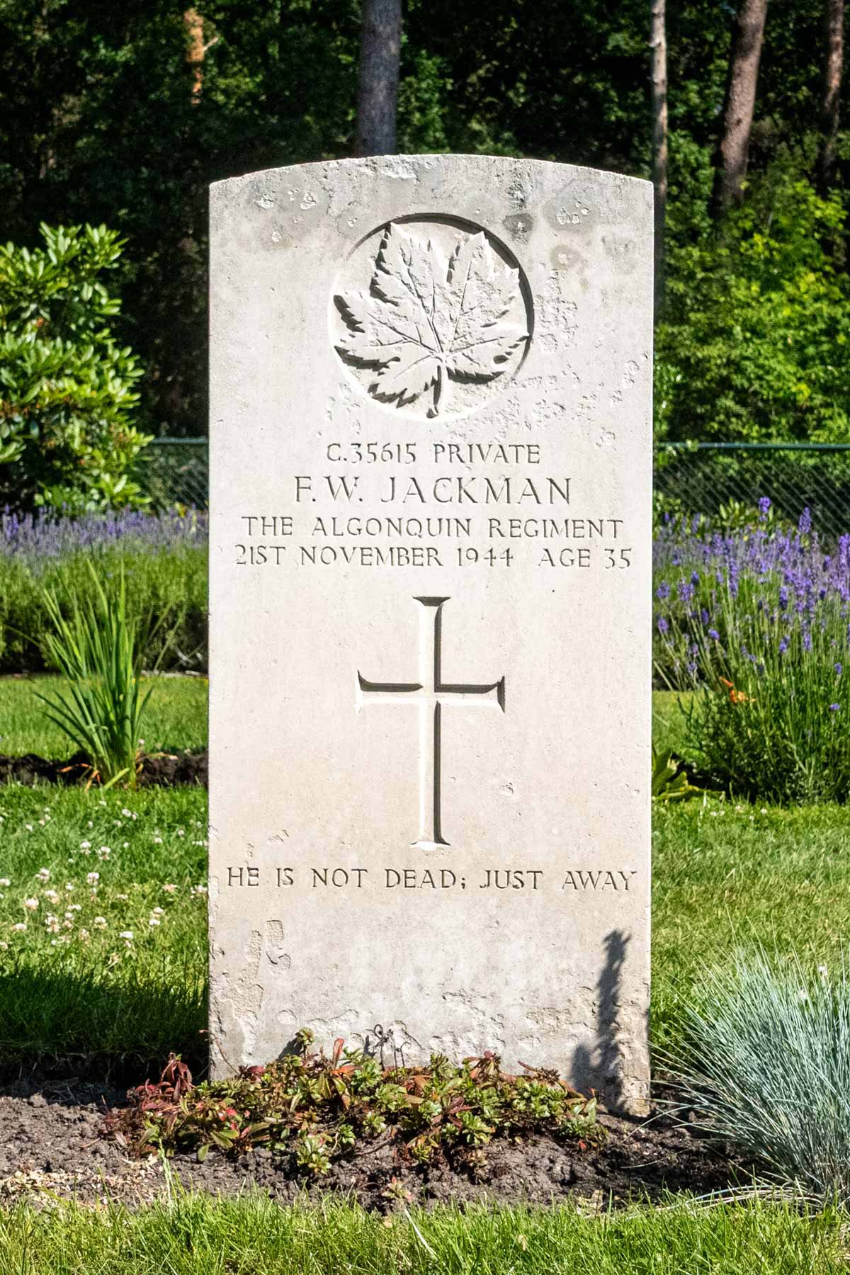 Date of death (dd-mm-yyyy): 21-11-1944Age at death: 35 yearFinal cemetery: Canadian War CemeteryGrave number (plot, row, grave): 08 G 07Rank: PrivateService number: C/35615