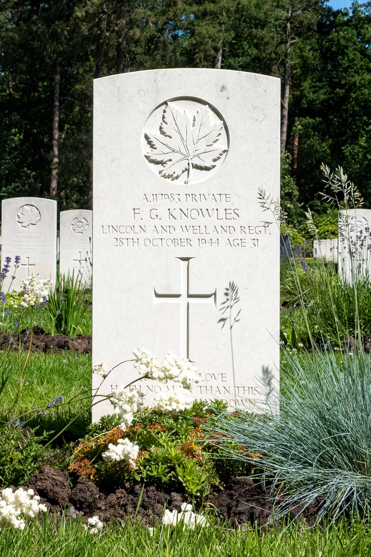Date of death (dd-mm-yyyy): 28-10-1944Age at death: 31 yearFinal cemetery: Canadian War CemeteryGrave number (plot, row, grave): 01 E 11Rank: PrivateService number: A/117983