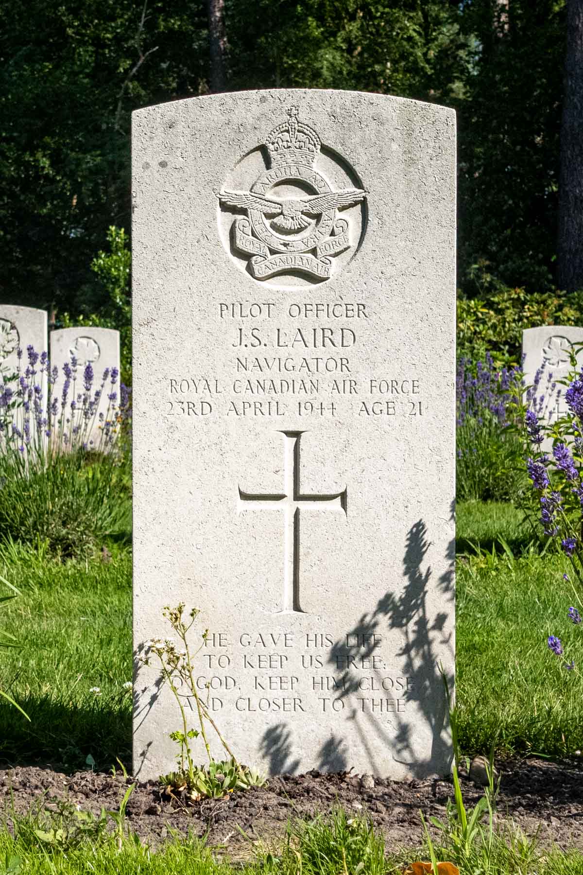 Date of death (dd-mm-yyyy): 23-04-1944Age at death: 21 yearFinal cemetery: Canadian War CemeteryGrave number (plot, row, grave): 11 E 04Rank: Pilot OfficerService number: J/87503