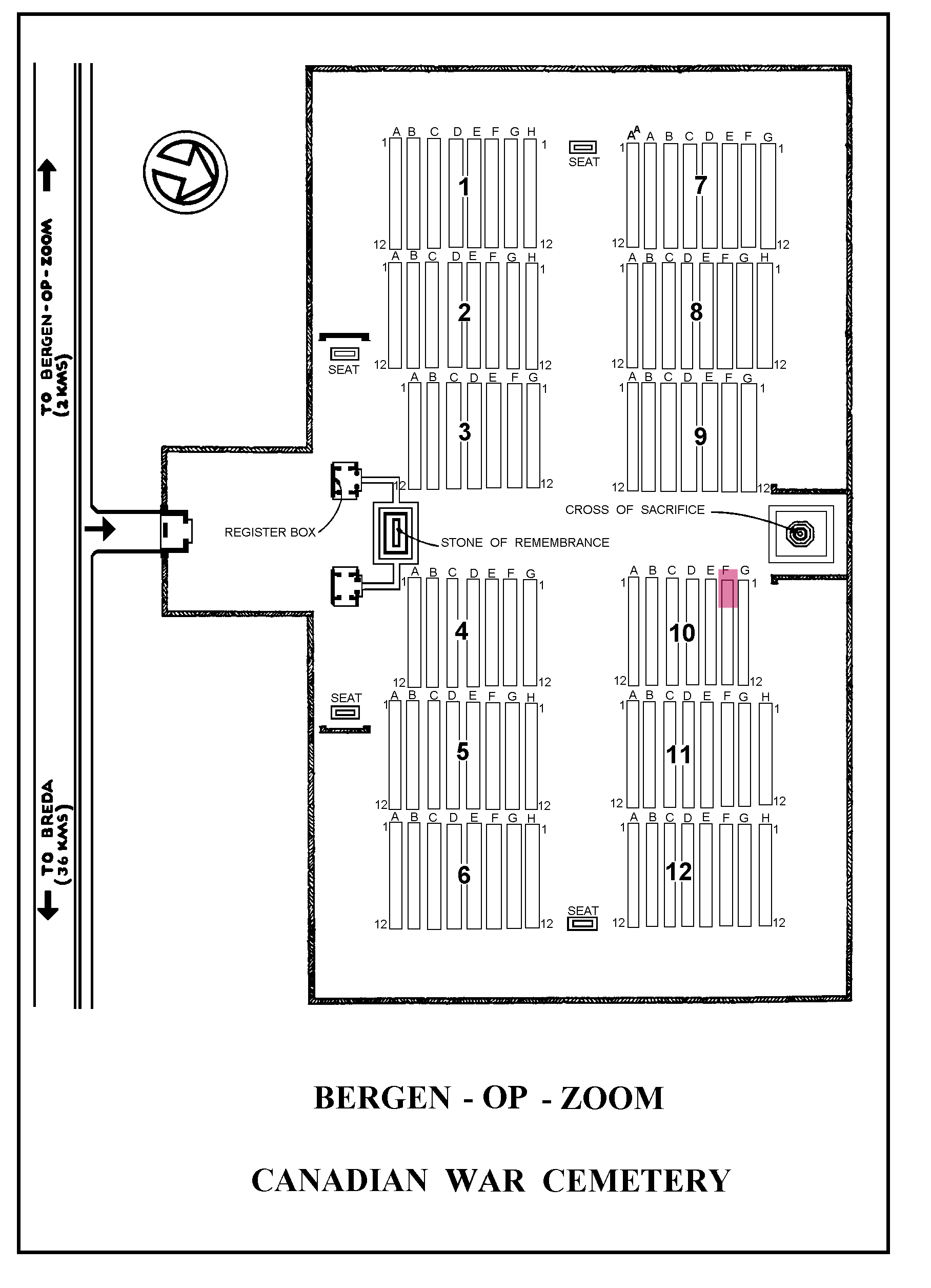 Date of death (dd-mm-yyyy): 10-11-1944Age at death: 35 yearFinal cemetery: Canadian War CemeteryGrave number (plot, row, grave): 10 F 01Rank: Brigadier