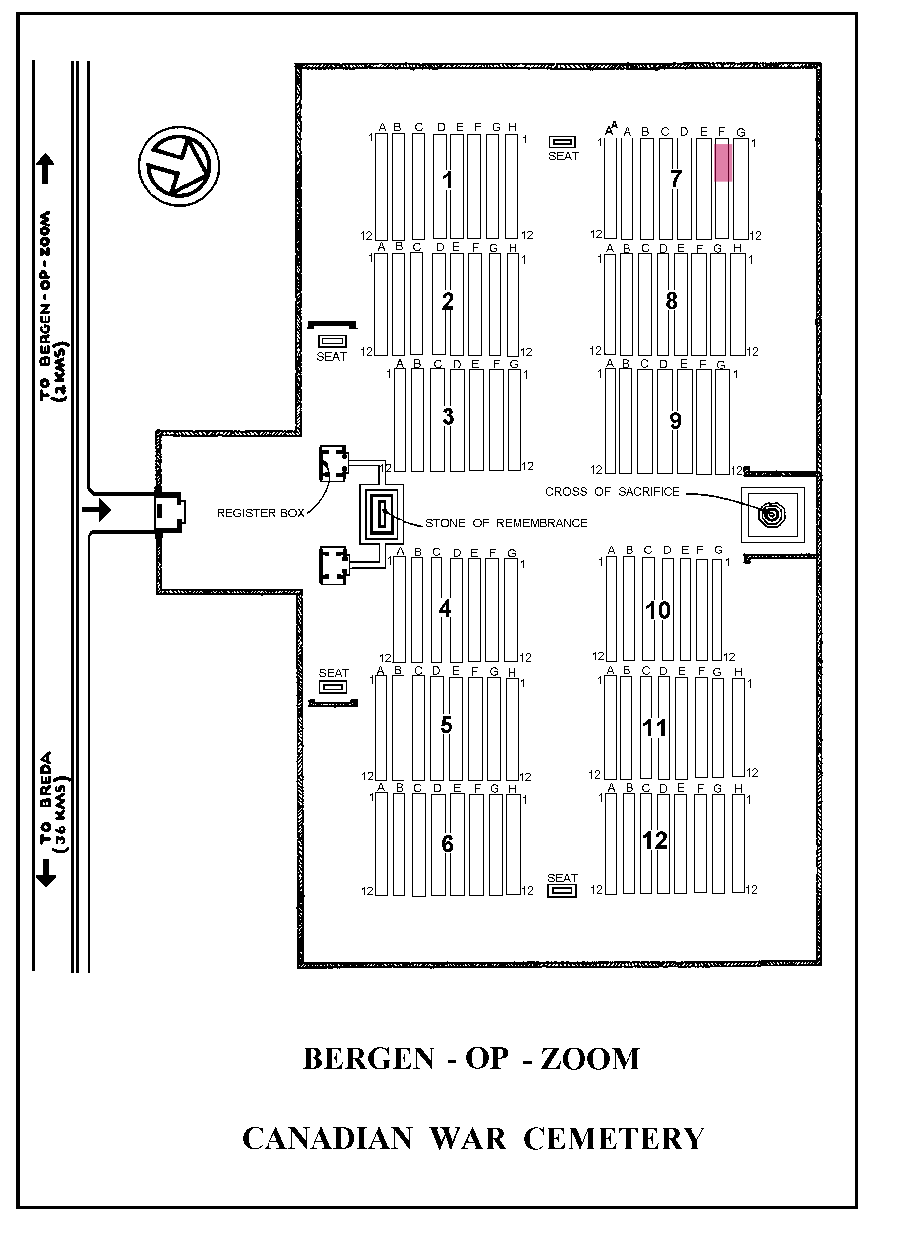 Date of death (dd-mm-yyyy): 11-11-1944Age at death: 24 yearFinal cemetery: Canadian War CemeteryGrave number (plot, row, grave): 07 F 03Rank: Lance CorporalService number: H/65999