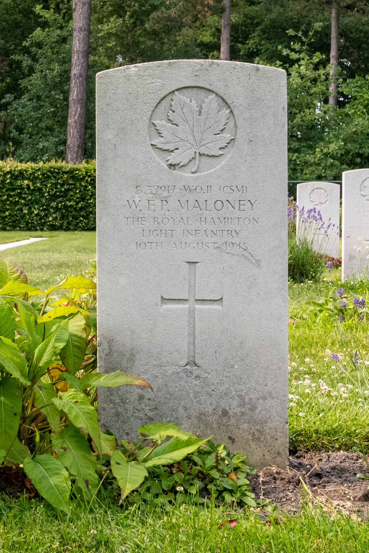 Date of death (dd-mm-yyyy): 10-08-1945Final cemetery: Canadian War CemeteryGrave number (plot, row, grave): 10 D 01Rank: Warrant Officer Class IIService number: B/37917