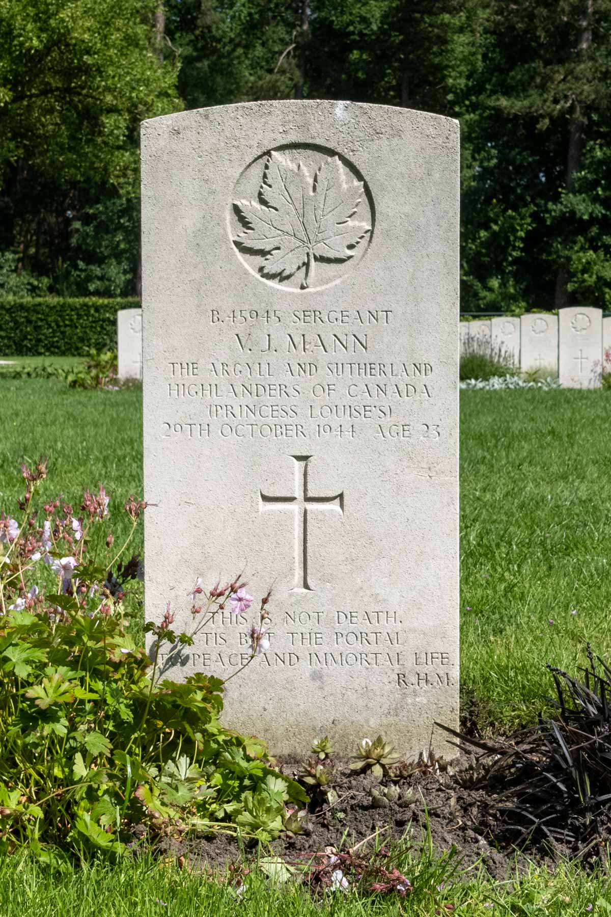 Date of death (dd-mm-yyyy): 29-10-1944Age at death: 23 yearFinal cemetery: Canadian War CemeteryGrave number (plot, row, grave): 04 G 02Rank: SergeantService number: B/45945