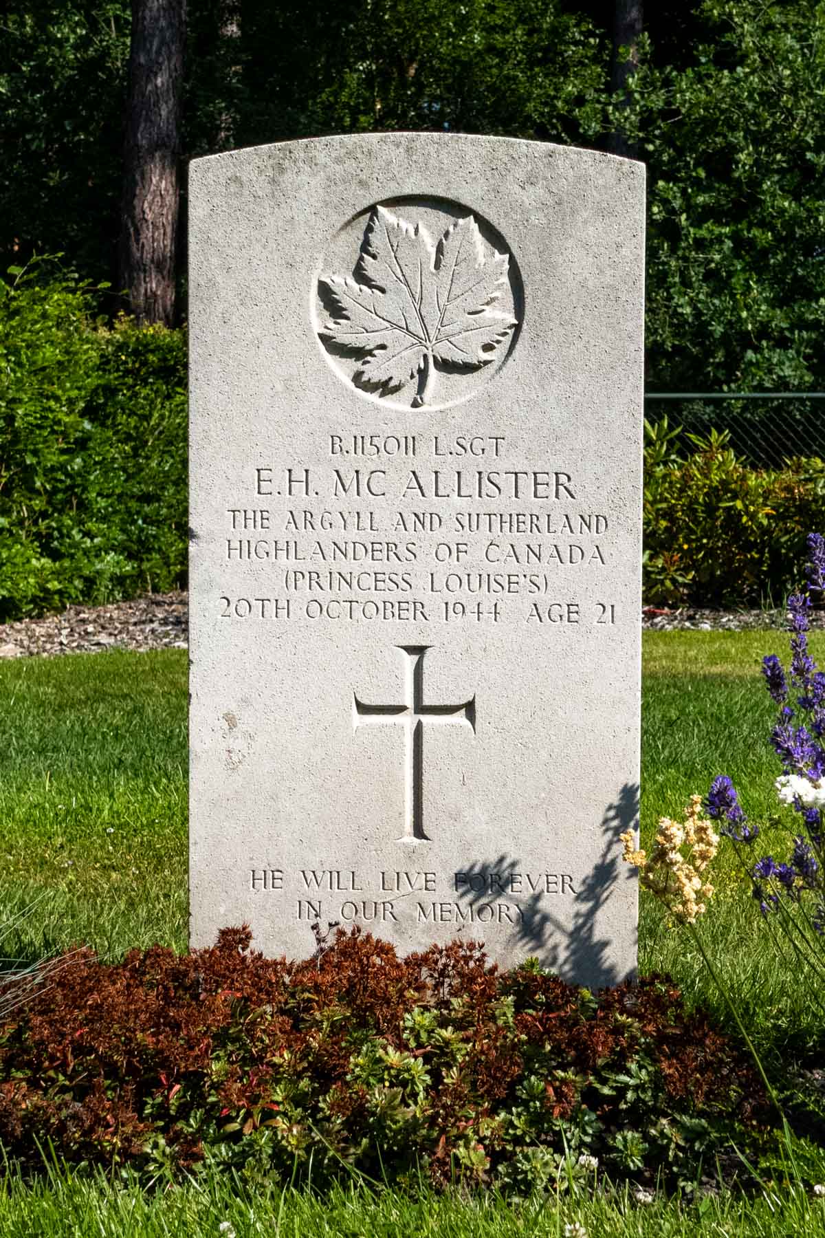Date of death (dd-mm-yyyy): 20-10-1944Age at death: 21 yearFinal cemetery: Canadian War CemeteryGrave number (plot, row, grave): 10 G 02Rank: Lance SergeantService number: B/115011