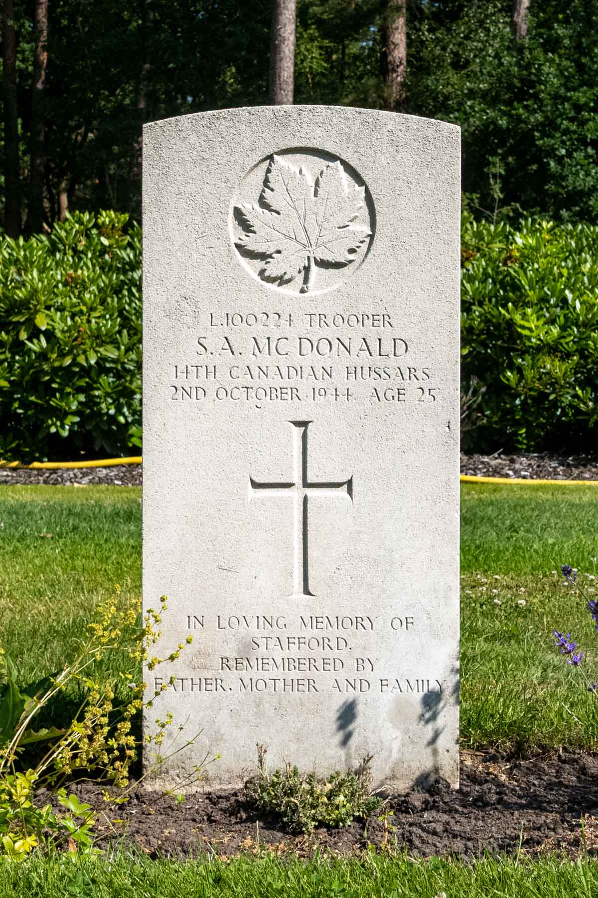 Date of death (dd-mm-yyyy): 02-10-1944Age at death: 25 yearFinal cemetery: Canadian War CemeteryGrave number (plot, row, grave): 09 G 06Rank: TrooperService number: L/100224Country served: Canada