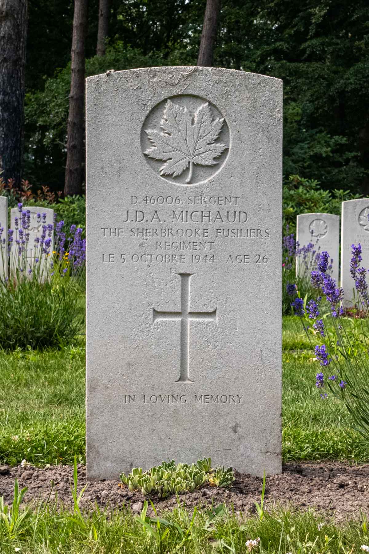Date of death (dd-mm-yyyy): 05-10-1944Age at death: 26 yearFinal cemetery: Canadian War CemeteryGrave number (plot, row, grave): 12 E 04Rank: SergeantService number: D/46006