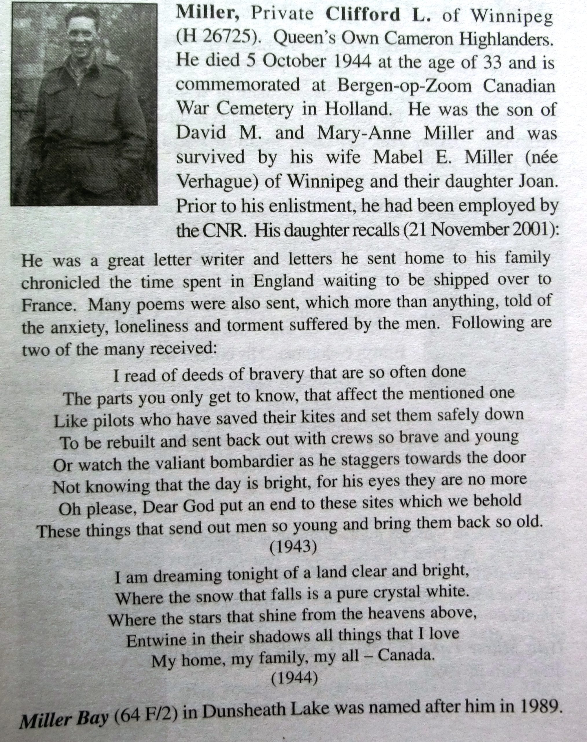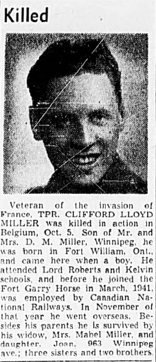 Date of death (dd-mm-yyyy): 05-10-1944Age at death: 33 yearFinal cemetery: Canadian War CemeteryGrave number (plot, row, grave): 01 D 11Rank: PrivateService number: H/26725