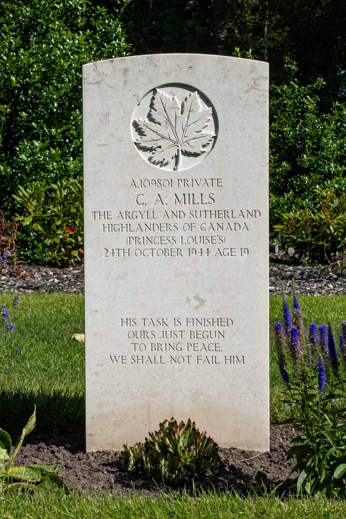 Date of death (dd-mm-yyyy): 24-10-1944Age at death: 19 yearFinal cemetery: Canadian War CemeteryGrave number (plot, row, grave): 11 H 02Rank: PrivateService number: A/109801