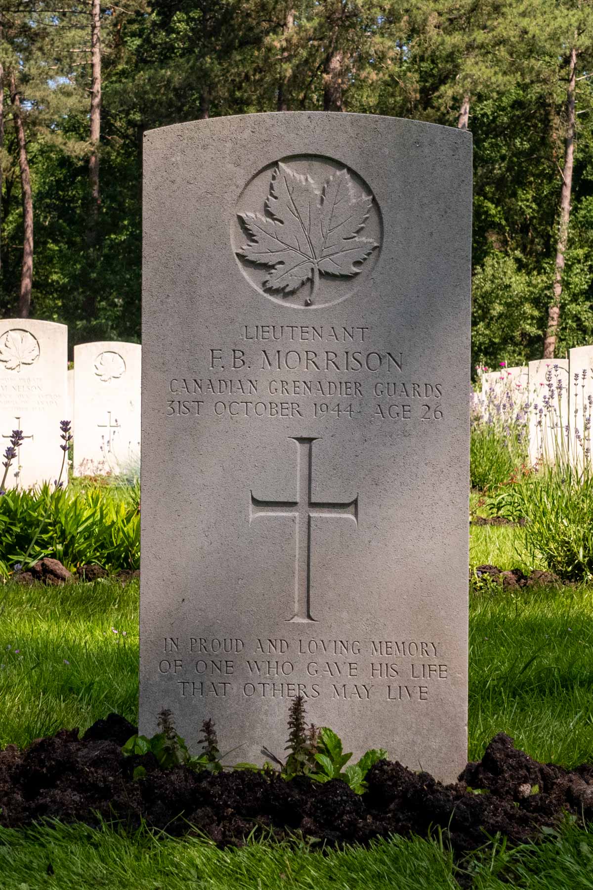 Date of death (dd-mm-yyyy): 31-10-1944Age at death: 26 yearFinal cemetery: Canadian War CemeteryGrave number (plot, row, grave): 01 B 08Rank: Lieutenant
