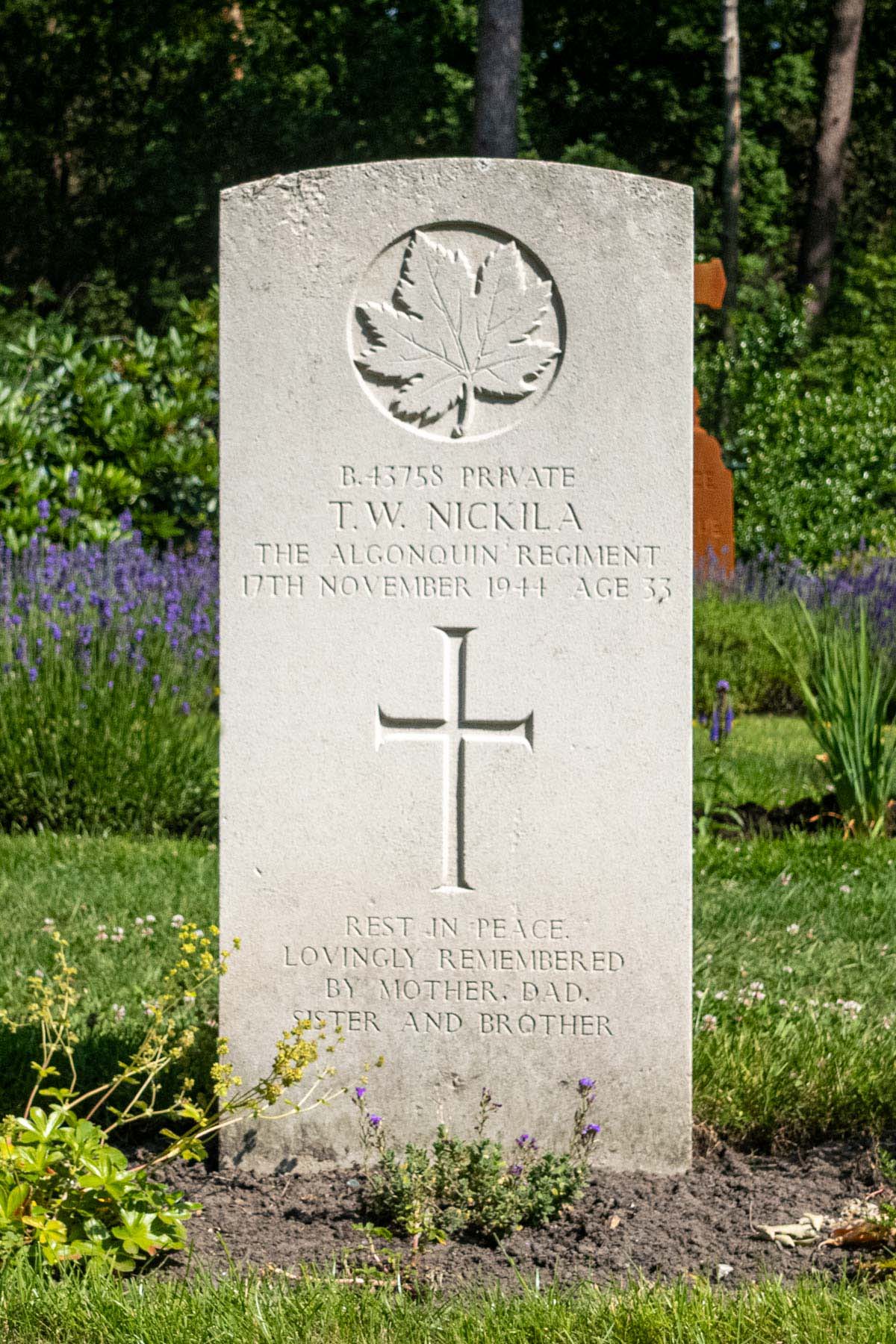 Date of death (dd-mm-yyyy): 17-11-1944Age at death: 33 yearFinal cemetery: Canadian War CemeteryGrave number (plot, row, grave): 08 G 06Rank: PrivateService number: B/43758