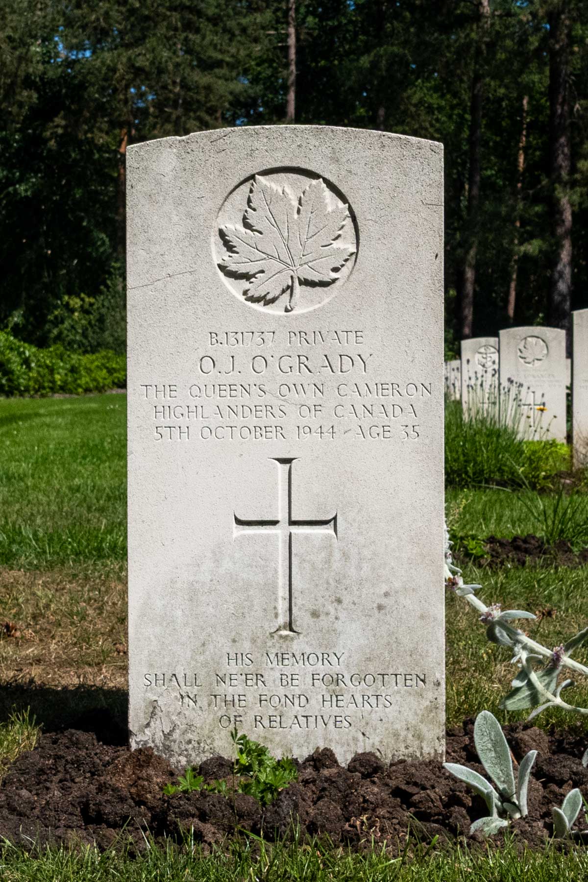 Date of death (dd-mm-yyyy): 05-10-1944Age at death: 35 yearFinal cemetery: Canadian War CemeteryGrave number (plot, row, grave): 01 D 01Rank: PrivateService number: B/131737