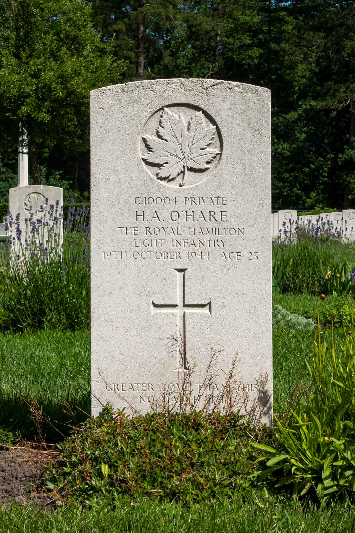 Parents: Patrick and Mary O’HareDate of death (dd-mm-yyyy): 19-10-1944Age at death: 25 yearReason of death: killed in actionPresumed place of death: WoensdrechtTemporary cemetery: Berendrecht, BelgiëFinal cemetery: Canadian War CemeteryGrave number (plot, row, grave): 04 E 03Rank: PrivateService number: C/10004Country served: Canada