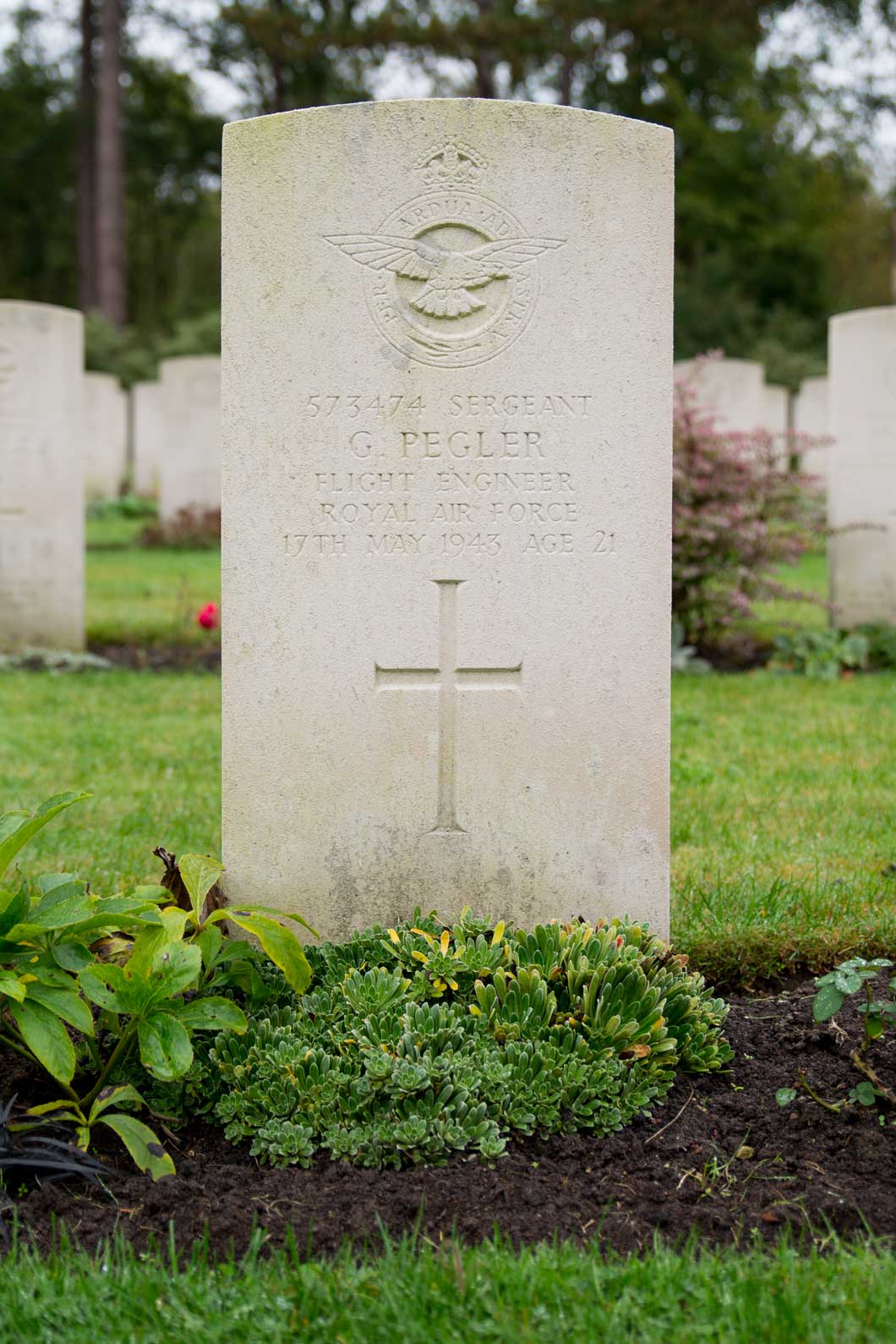 Parents: Claud Edwin and Charlotte Eva Pegler, from Bath, Somerset.Date of death (dd-mm-yyyy): 17-05-1943Age at death: 21 yearFinal cemetery: War CemeteryGrave number (plot, row, grave): 24 B 05-07DRank: SergeantService number: 573474Country served: United Kingdom