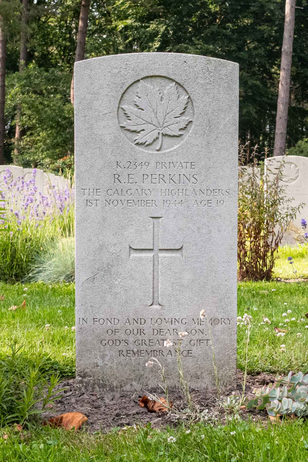 Date of death (dd-mm-yyyy): 01-11-1944Age at death: 19 yearFinal cemetery: Canadian War CemeteryGrave number (plot, row, grave): 12 A 06Rank: PrivateService number: K/2349