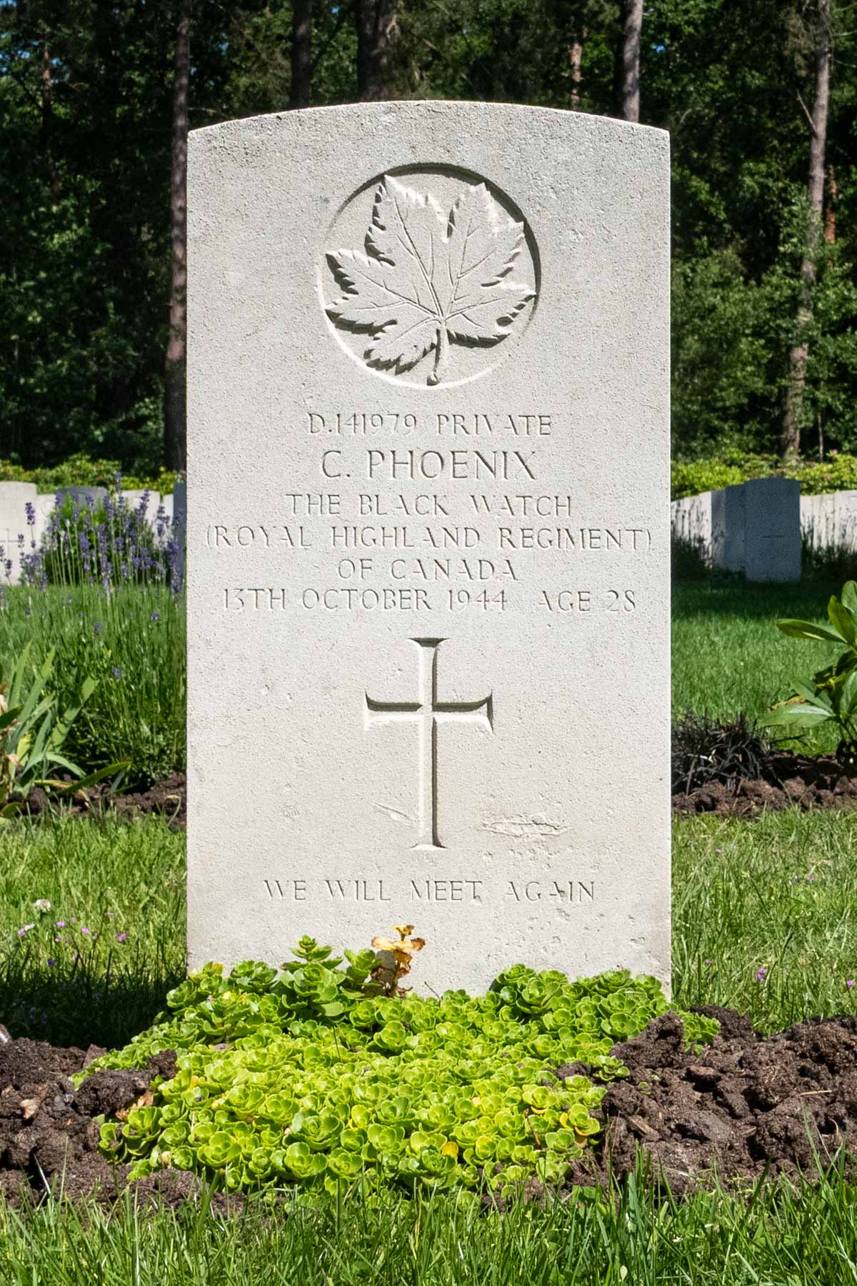 Spouse: Ethel Mary Hope (22-06-1942)Parents: Irvine Phoenix and Sarah BlairDate of death (dd-mm-yyyy): 13-10-1944Age at death: 28 yearReason of death: Killed in actionPresumed place of death: WoensdrechtTemporary cemetery: Ossendrecht Cemetery, Plot 2, Row 1, grave 24Final cemetery: Canadian War CemeteryGrave number (plot, row, grave): 01 G 10Rank: PrivateService number: D/141979Country served: Canada
