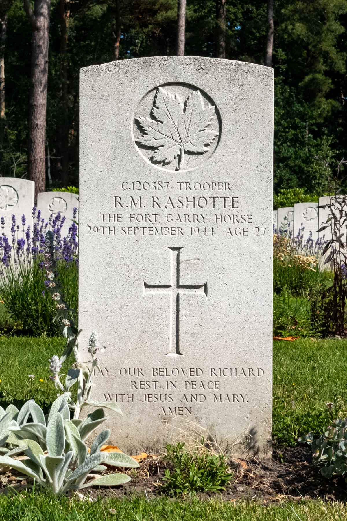 Date of death (dd-mm-yyyy): 29-09-1944Age at death: 27 yearFinal cemetery: Canadian War CemeteryGrave number (plot, row, grave): 09 A 06Rank: TrooperService number: C/120387