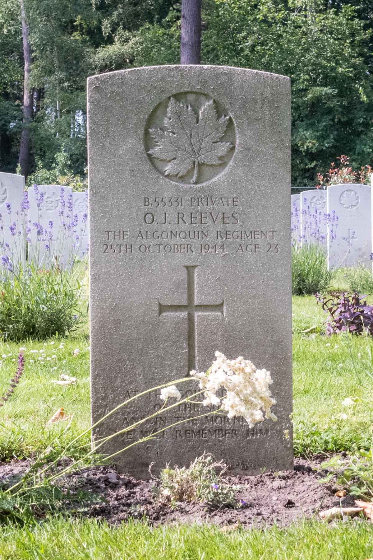 Date of death (dd-mm-yyyy): 25-10-1944Age at death: 23 yearFinal cemetery: Canadian War CemeteryGrave number (plot, row, grave): 11 B 07Rank: PrivateService number: B/55331