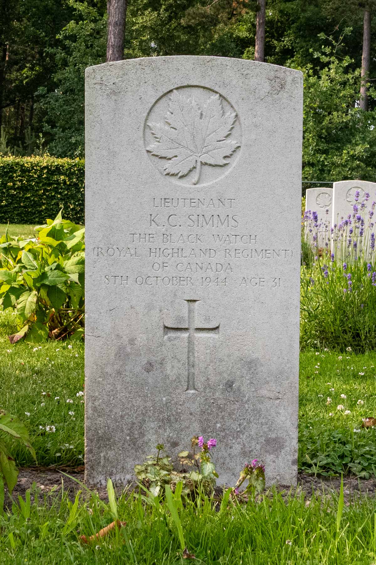 Parents: Henry and Emmelin SimmsDate of death (dd-mm-yyyy): 08-10-1944Age at death: 30 yearReason of death: Killed in actionTemporary cemetery: North of Kapellen, on the Kapelsestraat that goes towards Putte, in the garden of Boterberg Castle of Mr. VansillartFinal cemetery: Canadian War CemeteryGrave number (plot, row, grave): 10 C 01Rank: Lieutenant