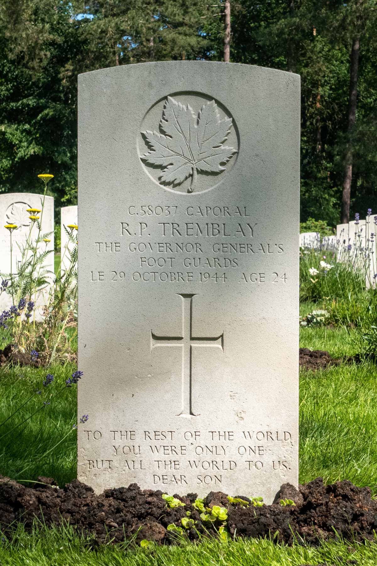 Date of death (dd-mm-yyyy): 29-10-1944Age at death: 24 yearFinal cemetery: Canadian War CemeteryGrave number (plot, row, grave): 01 B 02Rank: CorporalService number: C/58037