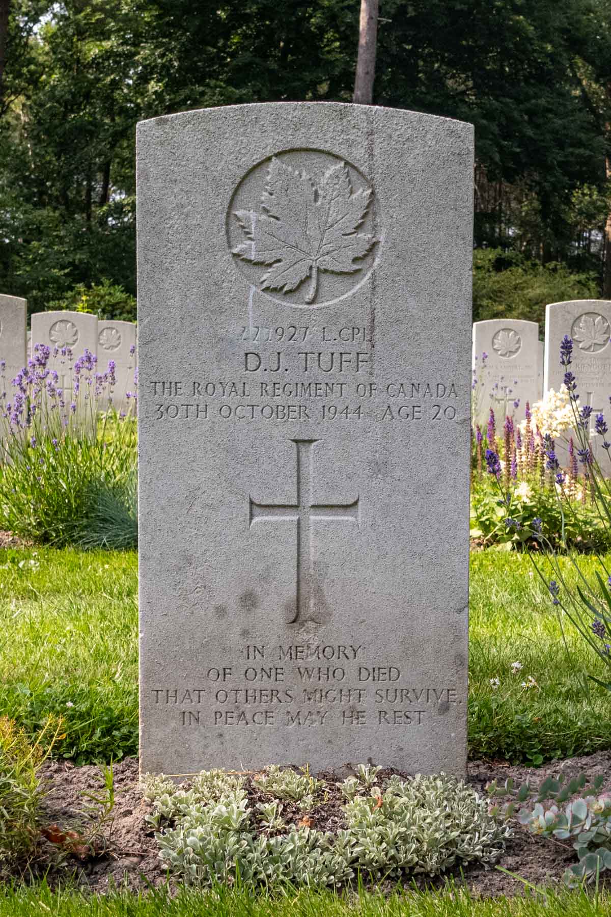 Date of death (dd-mm-yyyy): 30-10-1944Age at death: 20 yearFinal cemetery: Canadian War CemeteryGrave number (plot, row, grave): 12 A 10Rank: Lance CorporalService number: M/8927
