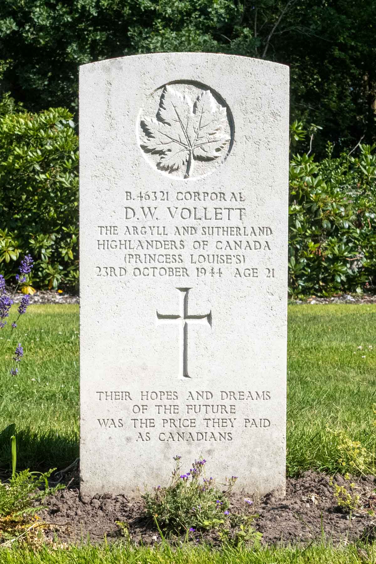 Date of death (dd-mm-yyyy): 23-10-1944Age at death: 21 yearFinal cemetery: Canadian War CemeteryGrave number (plot, row, grave): 10 G 11Rank: CorporalService number: B/46321