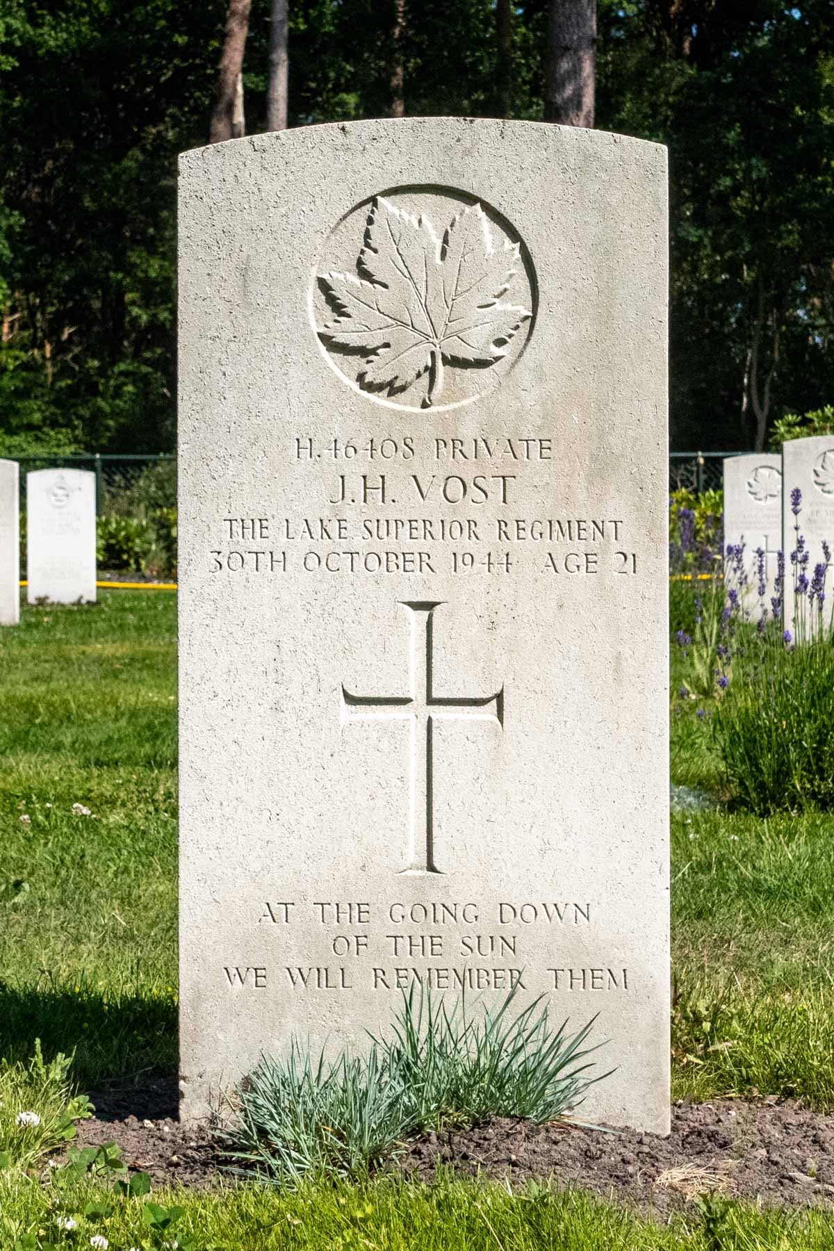 Date of death (dd-mm-yyyy): 30-10-1944Age at death: 21 yearFinal cemetery: Canadian War CemeteryGrave number (plot, row, grave): 09 C 01Rank: PrivateService number: H/46408