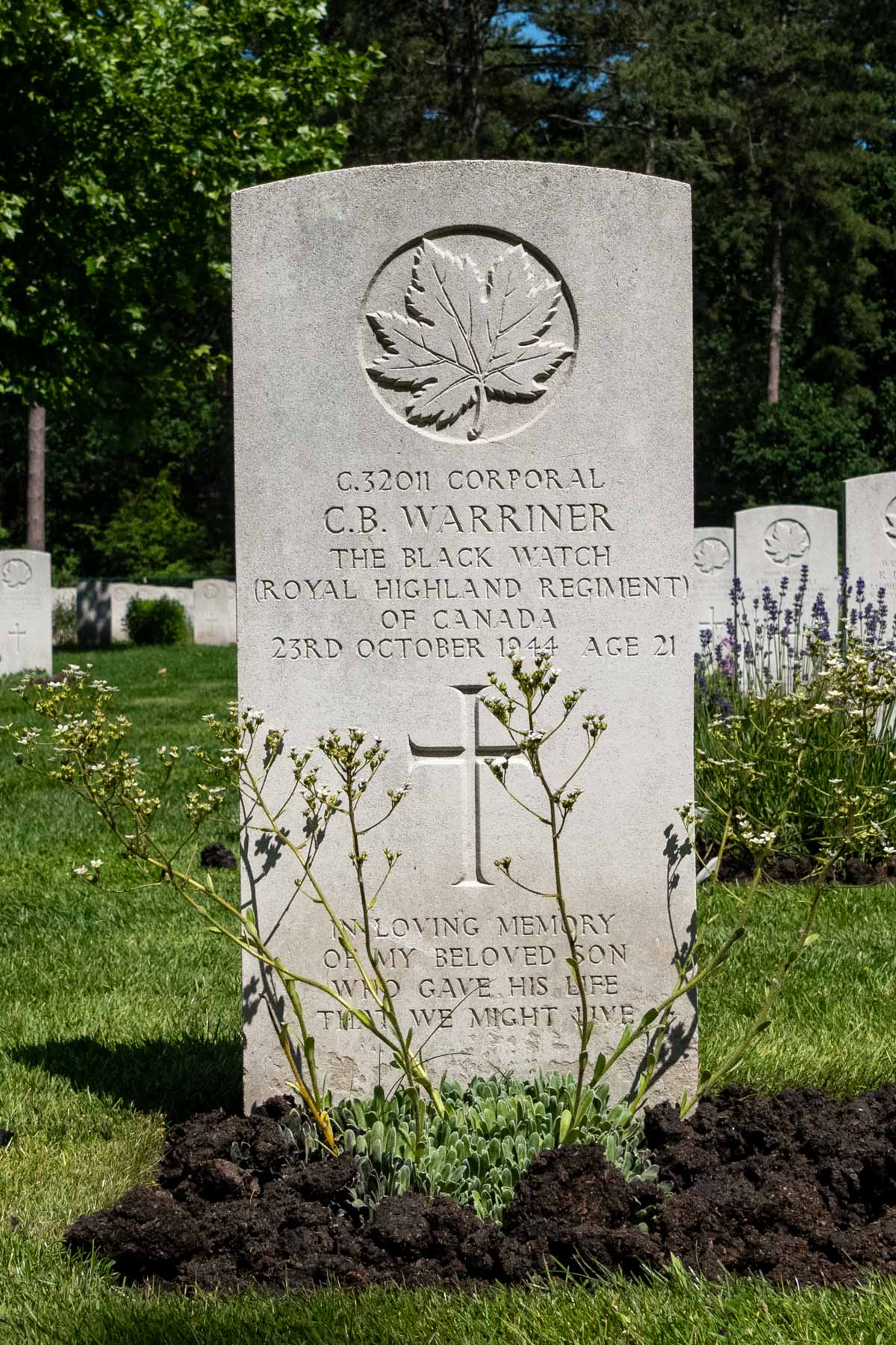 Date of death (dd-mm-yyyy): 23-10-1944Age at death: 21 yearFinal cemetery: Canadian War CemeteryGrave number (plot, row, grave): 03 B 01Rank: CorporalService number: C/32011
