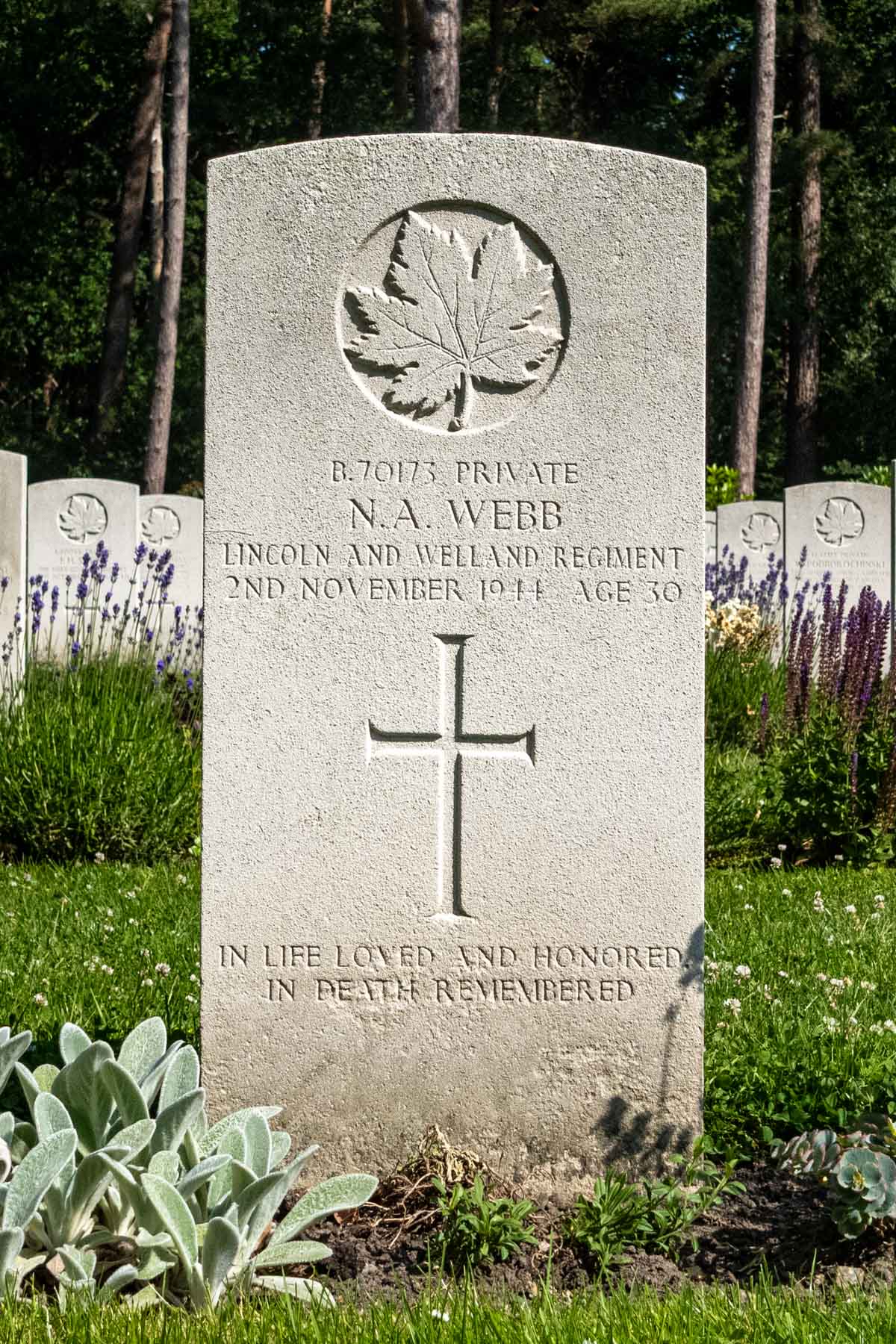 Date of death (dd-mm-yyyy): 02-11-1944Age at death: 30 yearFinal cemetery: Canadian War CemeteryGrave number (plot, row, grave): 09 A 02Rank: PrivateService number: B/70173