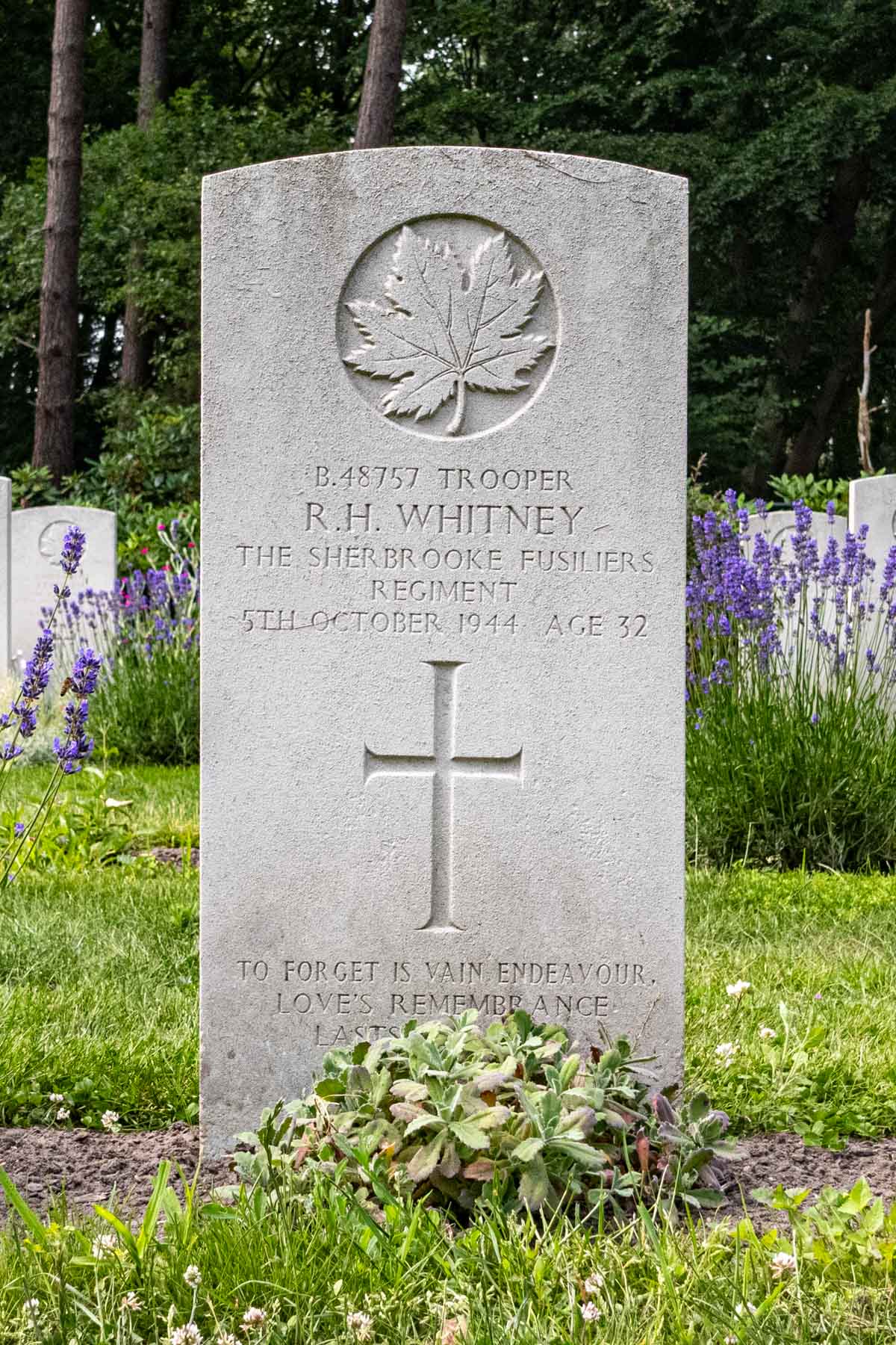 Date of death (dd-mm-yyyy): 05-10-1944Age at death: 32 yearFinal cemetery: Canadian War CemeteryGrave number (plot, row, grave): 12 E 05Rank: TrooperService number: B/48757