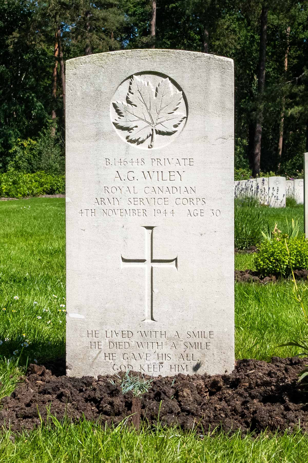 Date of death (dd-mm-yyyy): 04-11-1944Age at death: 30 yearFinal cemetery: Canadian War CemeteryGrave number (plot, row, grave): 01 F 01Rank: PrivateService number: B/146448