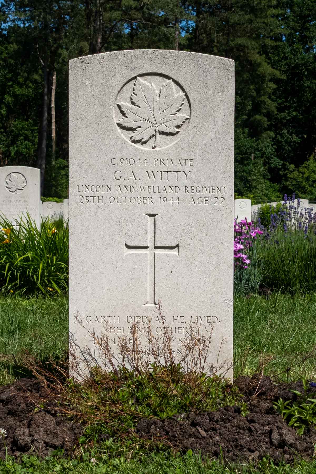 Date of death (dd-mm-yyyy): 25-10-1944Age at death: 22 yearFinal cemetery: Canadian War CemeteryGrave number (plot, row, grave): 03 E 06Rank: PrivateService number: C/91044
