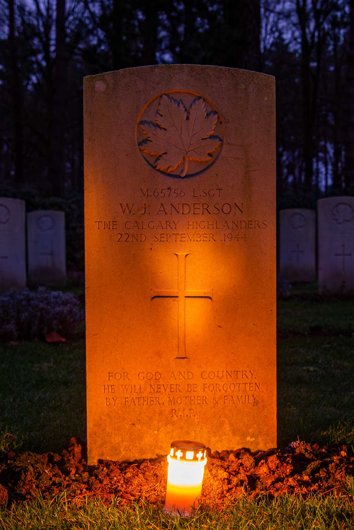 Date de naissance (jj-mm-aaaa): 26-10-1920Date de décès (jj-mm-aaaa): 22-09-1944Dernier cimetière: Canadian War CemeteryNuméro de tombe (plot, file, tombe): 07 D 06Rang: Lance SergeantNuméro de service: M/65756
