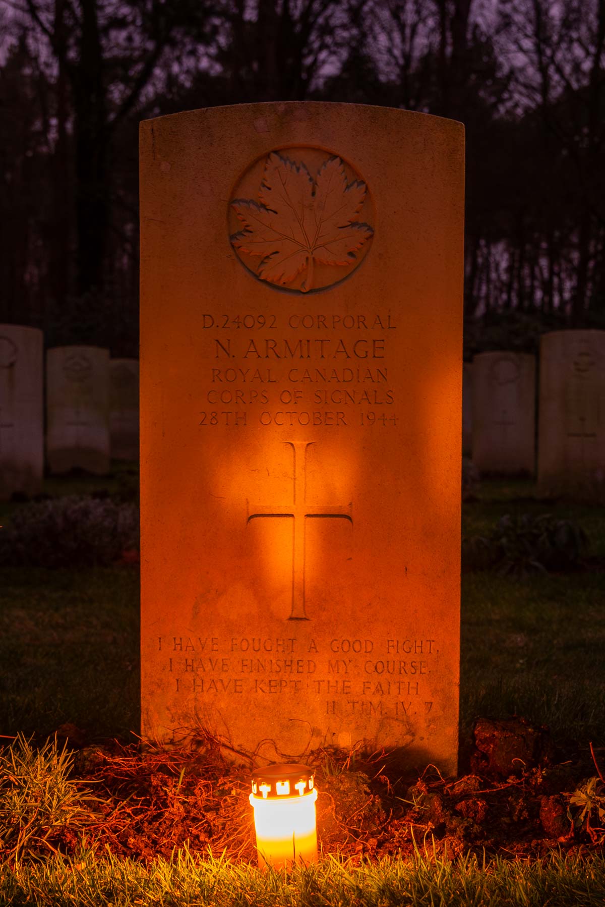 Parents: Walter et Mary Elaine ArmitageDate de décès (jj-mm-aaaa): 28-10-1944Âge au décès: 28 ansRaison du décès: Le Brencarrier a roulé sur une mine.Lieu présumé du décès: La rue actuelle Koedijk à KrabbendijkeCimetière temporaire: KrabbendijkeDernier cimetière: Canadian War CemeteryNuméro de tombe (plot, file, tombe): 07 C 11Rang: CorporalNuméro de service: D/24092Pays desservi: Canada