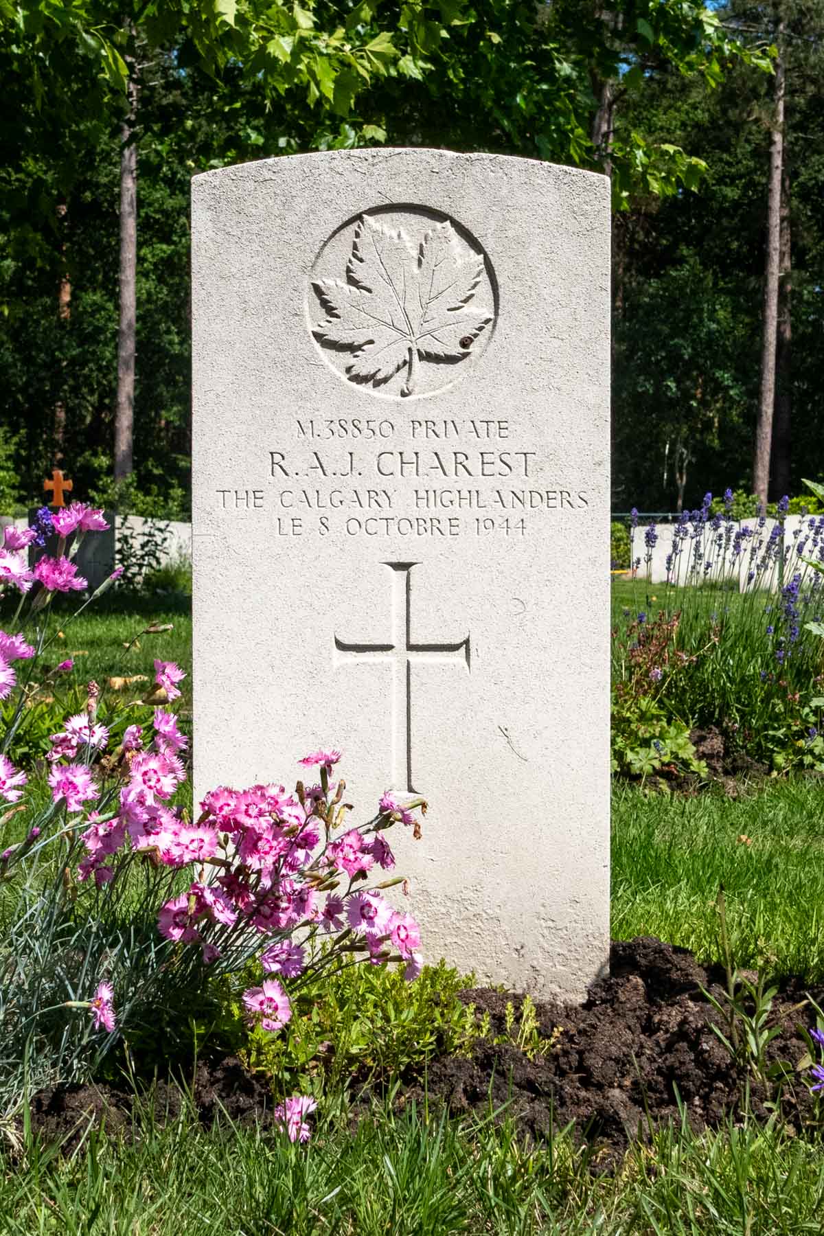 Parents: Benjamin et Cora CharestDate de décès (jj-mm-aaaa): 08-10-1944Âge au décès: 23 ansDernier cimetière: Canadian War CemeteryNuméro de tombe (plot, file, tombe): 02 G 11Rang: PrivateNuméro de service: M/38850Pays desservi: Canada